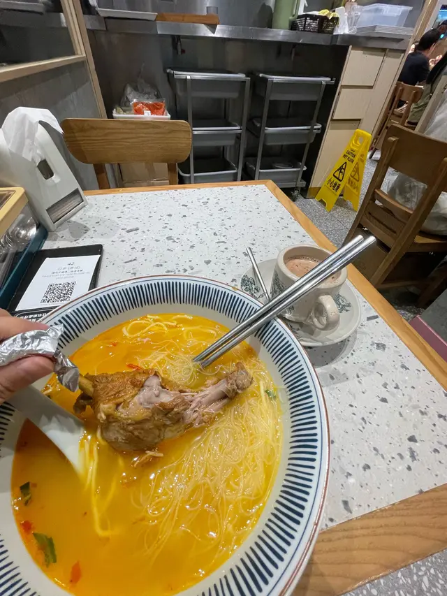 今日去咗康城的阿森雞飯,點咗個$48嘅下午茶餐,有一碗巴東牛肉滲滲同埋一杯熱拉茶。價錢合理,食物的質素都可以。碗麵係蛋麵加米粉,有少少蔬菜,牛肉都有5-6舊,不過牛肉有少少靭。奶茶味道都可以,不過我飲咗一啖奶茶先發現杯上有一個非常明顯的唇膏印!我今日冇搽唇膏,應該係之前的食客留低,但器皿沒有好好清洗。之後同店員反映,要求換過一杯,店員都馬上答應。除咗食物的質素,餐廳的衛生條件都好緊要。希望店方能夠維持食物嘅質素並加強清潔工作。…查看更多