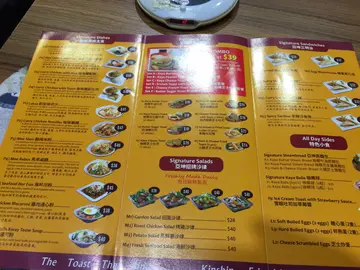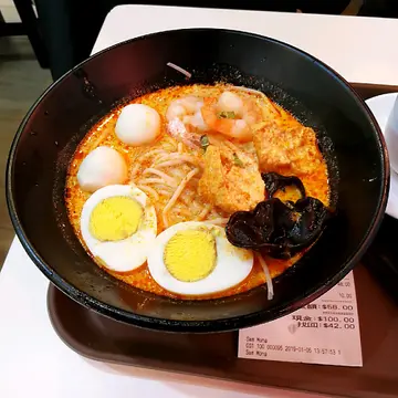 黄昏 18:15 没什么食客真好,够清静,返学前医医肚先。内笼装潢甚有新加坡格调,不过 food court 格调更浓,风味小食比主菜更出色。海南鸡饭,食家品评十分高,真的感到那来的 4 粒星?我免强吊车尾比 2 粒。油味饭鸡汤味有,鸡油香没有,蒸到湿淋淋,蒸到腍劈劈,没有干爽质地,没有咽韧饱满,黏口浆嘴的感觉不高兴。鸡汤超赞,仲有菜甜味,好好饮。水门鸡饭白潺潺鸡件?白色烚鸡鞋擘擘鸡肉,微弱雪藏味,鸡味险些儿被完全抹杀,还尚余一点蛛丝马迹。皮滑不油腻,紧贴著过熟略硬鸡肉,淡淡油盐水味,没有鸡甜鸡鲜味。一家大细靠晒您喇酱汁们!幸好酱汁出色,三合一挽回少许分数!首先沾点黑糖豉油,继而带著姜蓉,最后挂上红椒酱,化腐朽为神奇,味道突飞猛进,酱汁鸡肉捞埋油味饭,不错不错。白灼生菜,稳阵灼唐生菜,沾上蚝油爽甜可口。咖椰牛油吐司,微暖送到,不是即做的吗?第一次食咖椰,吐司非常香脆,似薄脆似饼干,没有多士外脆而里面是软塾面包的质感。吐司跟多士根本是两样不同的食物吗?牛油咸香突出,居然有练奶既?咸撞甜好好味㖞。奶茶,茶味特浓,少少甜少少奶,适合不爱甜的我。糖心蛋,使我联想儿时阿妈的滚水蛋。半熟蛋,捞上甜豉油,蛋黄甘甜无比黏黏的,蛋白滑滑的,简单料理满分无投诉。新加坡喇沙米线,雪藏虾合格,有点虾味。炸透的豆卜,较喜欢正常咽韧的。汤够香辣,椰味不太重,喇沙酱味浓厚,正合我口味。熟蛋正常,给我糖心蛋更好。鱼片一般,何解无新鲜蛳蚶呢?面线黏黏,不过非常弹滑,一开始跟汤捞匀点够好。面线明显系分开煮,最尾先落喇沙汤。隔离台的 ABC 美女稳太黏不喜欢,整碗掉下不吃。…查看更多