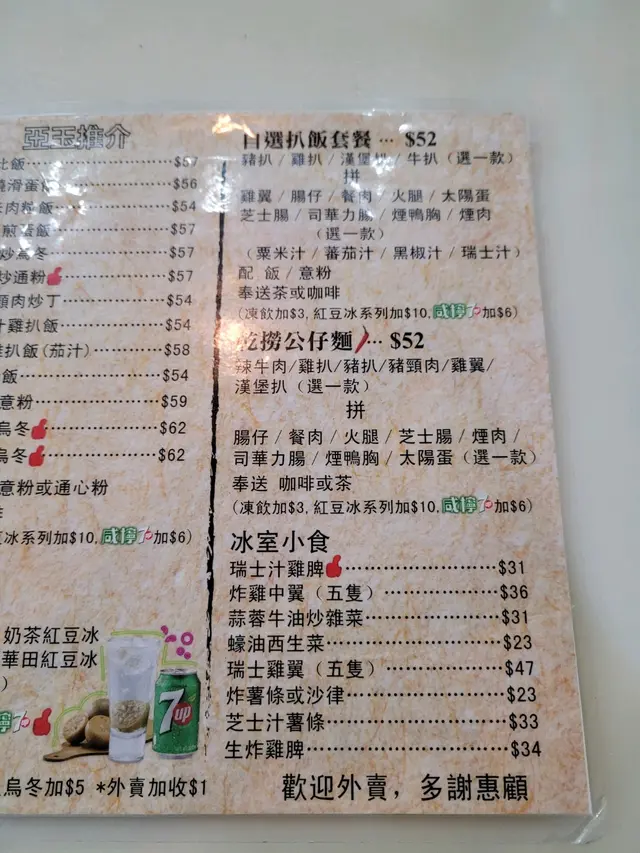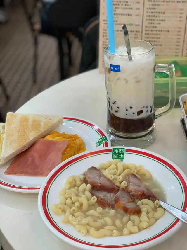 炒公仔麵或者河粉個啲就食得多!炒通粉真係已經愈黎愈少地方見到🥹 平時都係飲經典經豆冰,呢到仲要有成多達五款大大杯紅豆冰比你揀!冰室黎講真係唔簡單😍💛黑椒牛肉炒烏冬 [轉炒通粉] ($57)濃濃嘅黑椒香味真係令人流晒口水🤤 通粉炒得乾身之餘,成碟仲要充滿鑊氣!牛肉份量都幾多,食落仲唔會韌😚 蔥同洋蔥份量都唔少,撈埋一齊炒真係好香!但如果唔食嘅話記得走咗佢,唔係有排挑🤣💛瑞士汁豬頸肉炒丁豬頸肉塊塊都好大塊,咬落爽口!而每一條麵嘅瑞士汁味都好濃同均勻,唔會有啲過鹹,有啲又冇味😆 呢款就相對冇炒到咁乾身,間唔中過下口癮都不錯😗💛柚子七喜 (+$6)呢個配搭估唔到係咁夾!平時一係柚子茶,一係柚子梳打。但原來轉咗做七喜嘅時候,係七喜味之間又夾雜啲柚子,成件事好fresh,又有啲咬口,值得一試🤩💛奶茶紅豆冰 (+$10)紅豆冰極大杯,基本上飲完佢都飽咗一半!飲經典經豆冰飲悶咗,呢款奶茶紅豆冰就試試佢。可以將兩款港式飲品融合一齊簡直係一次過滿足兩個願望!味道新奇,仲有咖啡同華田紅豆冰可以一試👍🏻💛樣樣份量都好大,食完真係飽到捧住個肚走😆————————————————————————🌼評分:5個🌕為滿分🫧味道:🌕🌕🌕🌕🫧環境:🌕🌕🌕🌗🫧性價:🌕🌕🌕🌕🌗🫧回頭:🌕🌕🌕🌕🌖⏰限時:NA查看更多