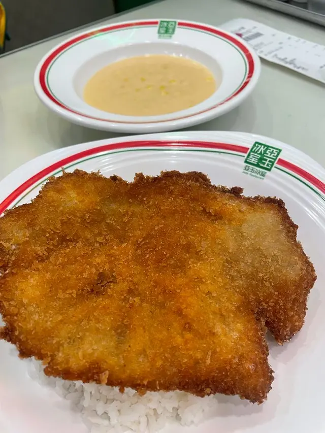 基本上是這間餐廳常客。今次星期六午餐時間來,人不多,兩個人坐四人卡位,坐得舒服。咖喱豬扒飯:想吃炸豬扒,但不想吃咖喱,餐廳好貼心,將咖哩汁改成粟米白汁,creamy又多粟米,豬扒即叫即炸,熱辣辣,香脆惹味,而且好大塊,兩個人share都吃不完。常餐:不過不失,公仔麵煮得太熟,牛份量算多,入味,不過不失。吃完離開才發現無火腿,蝕咗。奶茶:夠茶味,夠滑,經典。整體員工服務態度良好,收碟收得快,吃完傾計都舒服。查看更多