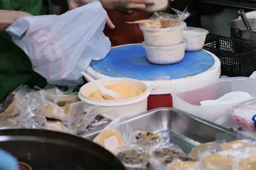 今日去到元朗又新街见到好多人排队买亚玉豆腐花咁我都埋去望下啦见到佢仲有砵仔糕,呀姐整紧拆紧碗见到咁多人排我都忍唔住要试下啦本来净系想买豆腐花见到都有几多人买下其他糕点咁我就心思思想试埋个砵仔糕糖水系可以自己落嘅另外我叫佢分开畀黄糖我因为我要拎到返屋企都一段时间,唔想啲黄糖溶晒一pat不过佢连包装出面个白色胶袋都好黐立,搞到我成手都立次次返到去我可以自己落黄糖,佢啲黄糖都畀得几多我都用唔晒我净系用咗半包反而个砵仔糕几惊喜仲好食过,附近国记嘅糯米砵仔糕太好食唔记得影低