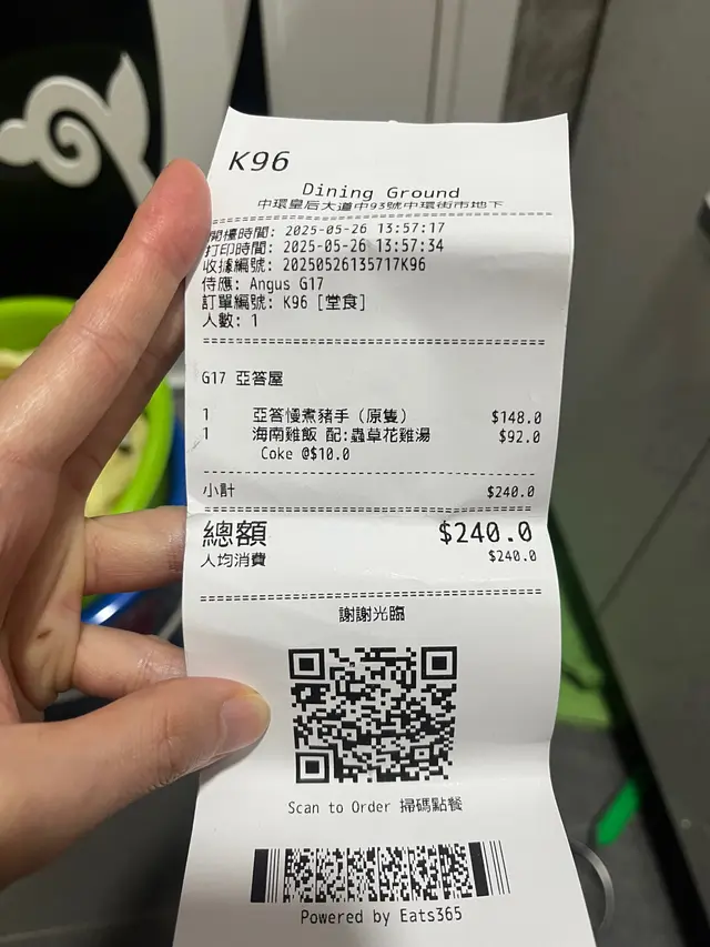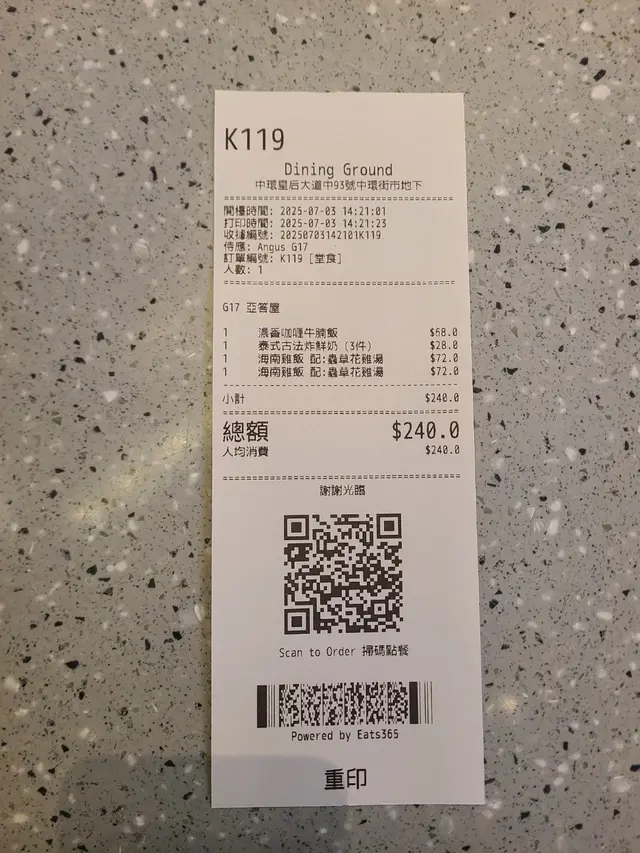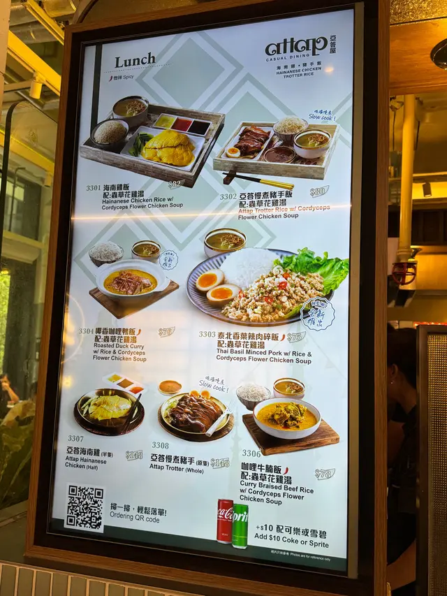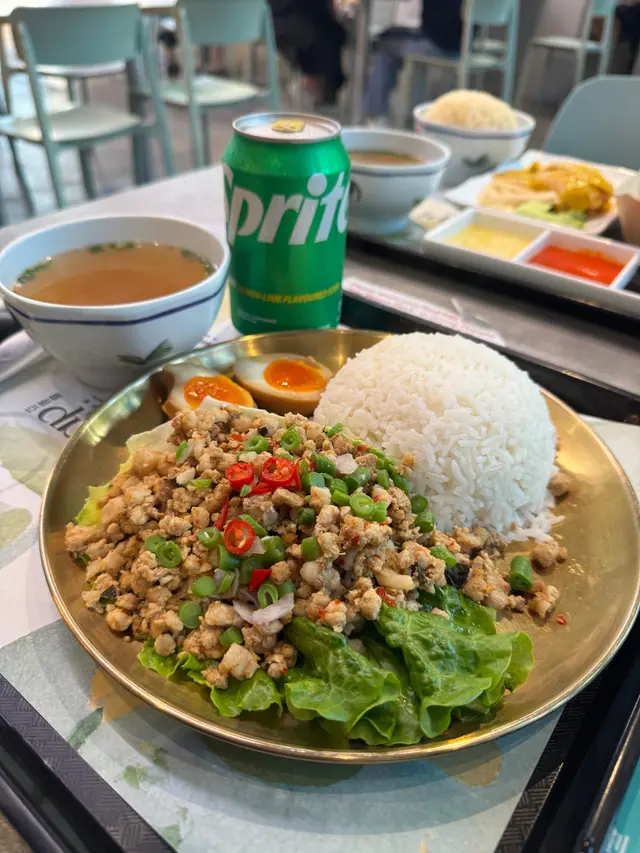最近在中環忙碌的午休時間,決定到亞答屋試試新,位於中環街市入面的food court。整體來說,份量、味道還好,適合追求實惠的食客。第一道:海南雞飯配蟲草花雞湯 ($82 + 雪碧 $10)海南雞飯用的雞肉唔算特別滑, 飯中規中矩。重點是附送的蟲草花雞湯,湯頭清澈鮮甜,蟲草花增添絲絲藥材香,喝起來暖胃解乏。雪碧加 $10 解渴,氣泡十足,完美中和雞飯的油潤。整體評分:7/10,適合想吃得健康又滿足的日子。第二道:泰北香葉辣肉碎飯 ($75)+ 雪碧 ($10)這道是泰北風味的代表,肉碎炒得香辣入味,加入香茅、辣椒和魚露,辣度我覺得非常高,唔食得辣嘅朋友唔建議食。飯底是泰國香米,粒粒分明,拌上肉碎和青菜,層次豐富。份量一般。不過在 Food Court 環境下,這價錢能吃到如此地道泰北味,實屬難得。評分:7/10,推薦辣食愛好者。第三道:大蝦青木瓜沙律 ($68)這道經典泰式沙律以青木瓜為主,帶來清新的脆口感,酸辣調味輕盈開胃。魚露與檸檬汁的比例拿捏得宜,酸度柔和,帶出食材本味。整體風味偏向清新路線,適合喜愛輕食或想為正餐增添一抹爽利的朋友。評分:6/10。…查看更多