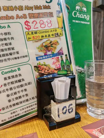 菜品选择多元化,以泰式口味为主,款款足料惹味,定价合理。餐厅不乏泰国风格的装饰品,加上书架、绿植等布置,气氛相当写意。