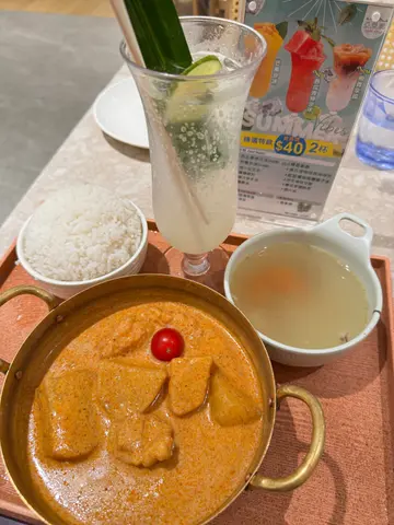 约$68-$78😕服务泰麻麻尤其😒收银泰面㶶,但泰好味和装修倶佳,尤其冬荫功海南鸡汤金边粉😋配椰汁珍多冰,下午茶价格相宜鲜黄海南鸡足料又肉嫩皮滑,汤头浓郁香辣惹味,就系少了配料无香菜无草菇无茄......不过之前下午茶可以优惠$$追加小食就除消了,见邻座少姐想追加青木瓜沙律却要额外正$70-80她也就放弃了,梗系,今时今日穷人多过鬼.装修很有东南亚风味,有假树风扇很有慢活情调,舒适宽敞,本来之前系一个闲情日志叹个下午茶不错地方,可惜随著疫情过后又大热天时,多咗人穷逛商场食平嘢,下午茶开始人多嘈吵己不复当时悠闲清净也少去了