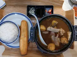 今晚过来看演唱会, 演唱会前要医肚, 周围看看有乜嘢食, 最后我㨂左依度, 感觉好似清淡d, 望下餐牌都几多选择, 再之后自己QR code 落单, 点左个鸡丝🐔扎肉汤檬粉配热柠🍋檬薏米, 再加多碟玻璃鱿鱼通菜, 等左唔系好耐, 一入单转头都出来😄, 饮品先到, 望到好够颜色好浓, 原来入面有d一条条冬瓜, 再之后送来檬粉同通菜, 一碗粉加热饮, 50多元算系几抵, 而且系夜晚, 碗粉份量都唔细, 饮啖汤先, 有d味, 不过叫做暖暖地, 唔系好热辣辣个只, 檬粉都比得几多, 浸左汤更好食, 而且质地唔系碎湿湿, 算系唔错, 而且鸡丝🐔同扎肉都比得几多, 不过就食唔到d肉味了😆, 又食玻璃鱿鱼, 够爽脆, 佢有d汁, 都几好食, 通菜都够嫩, 不过加30多元, 贵定抵就睇自己认为, 我个人都可以接受😀, 合共埋单91元, 都ok啦, 食左够饱亦唔系好口渴, 但见店员就服务态度一般, 有d比较悔气同唔忧做的心态, 想d客人食完即刻走🤔, 不过唔系有演唱会, 又有边个会来依度食饭😅之后埋单出来, 原来出面排长龙, 难怪唔想大家坐得耐😂幸好我早来一d😘 但我估佢价钱相比其他较平, 而且啱食d, 所以系得佢系排队😆…查看更多