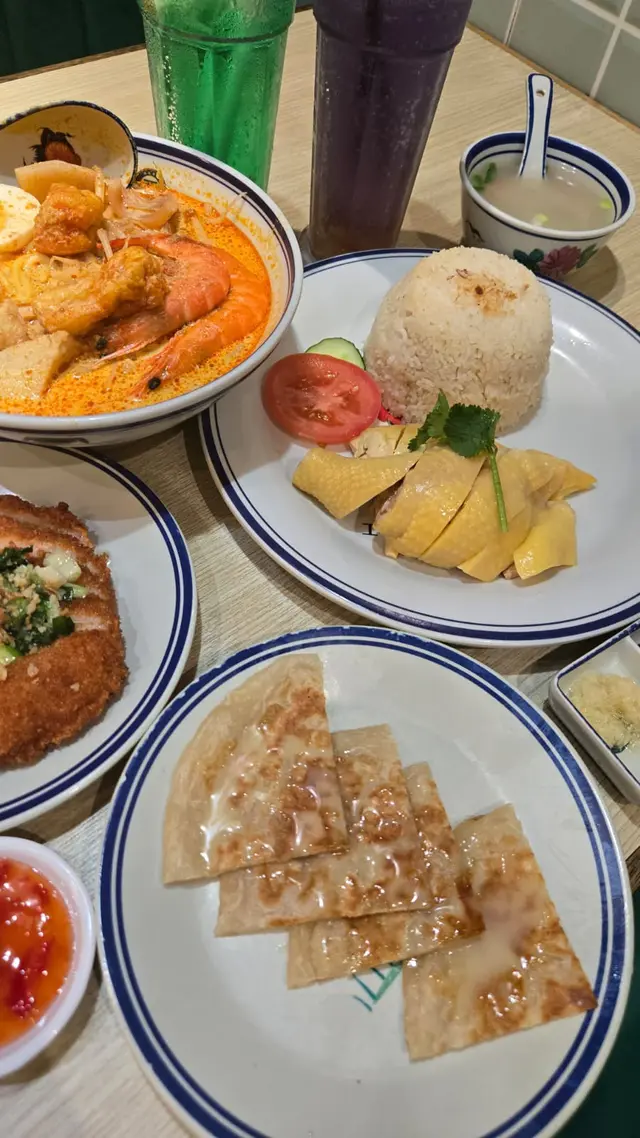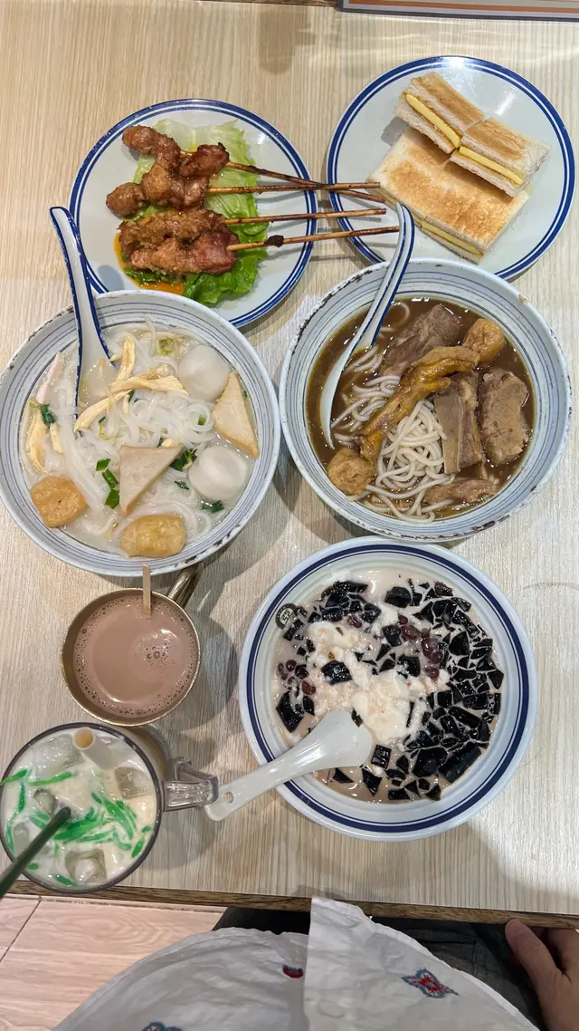 亞金南洋茶室,聽個名就知食東南亞菜式,餐品選擇非常多,每一道菜都充滿了濃濃的東南亞風情,讓人回味無窮,價錢亦相當親民,跟同事兩點鐘到來食下午茶餐,升級特飲仲有半價,好味亦抵食。🌟 一字骨肉骨茶配湯米線絕對是必點之選。藥膳湯底溫潤甘甜,沒有過重的藥材味,裡面的料更是豐富,有一字骨、豆卜和雞腳。一字骨早已燉得離骨軟爛,入口即化,每一口都吸飽了湯汁的精華。🌟魚丸魚片頭雞絲湯河粉湯底散發着淡淡鮮香,河粉夠滑溜,魚丸魚片彈牙爽口,有魚味,雞絲肉質不會柴,這碗湯粉都很鮮甜,不是味精之作。🌟鮮牛油咖央多士,咖央醬的椰香與厚厚的鮮牛油完美融合,邪惡又美味,絕對是甜品控的最愛。🌟沙爹雞肉串燒(4串)雞肉燒得微微焦香,仍然保持鮮嫩,靈魂在於秘製沙嗲醬,每人食咗兩串,真係意猶未盡。鮮牛油咖央多士🌟黑白配(涼粉,紅豆、豆腐花)滑嫩的豆腐花帶著淡淡的紅豆香,Q彈的黑色涼粉增添了口感,三者搭配,口感豐富,甜度清爽自然。🌟椰汁珍多冰椰香濃郁卻清爽,甜度適中,加入翠綠的珍多,色彩斑斕,這杯飲品不只好喝,顏值都很高。🌟熱美祿這杯熱美祿充滿南洋風情的熱飲,味道比平常的巧克力更為濃厚香醇,童年的味道。…查看更多
