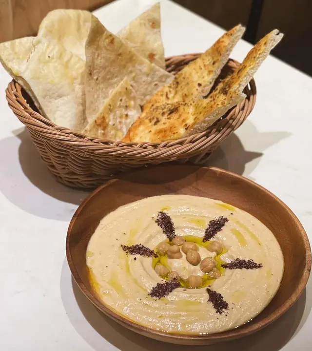 Hummus Signature Nachos Homemade tortilla chips, guacamole, sour cream and mango salsa