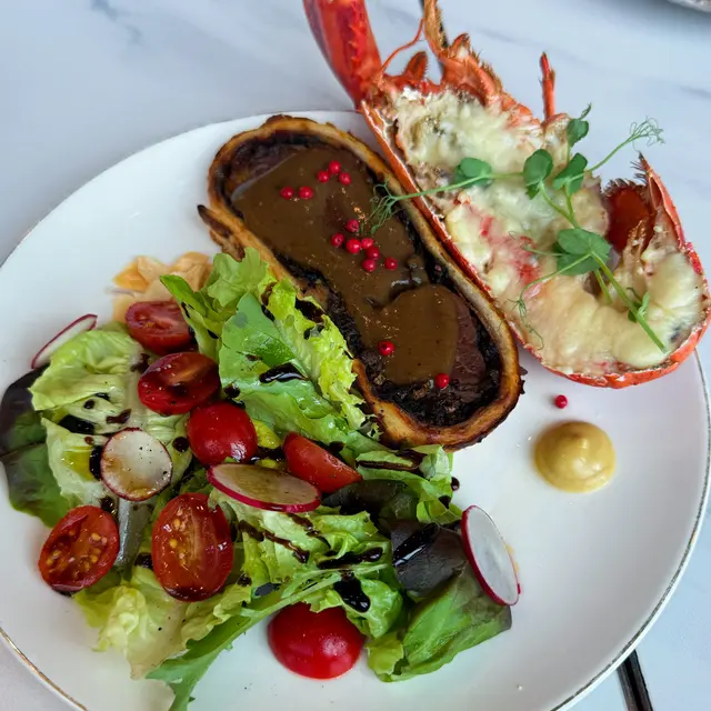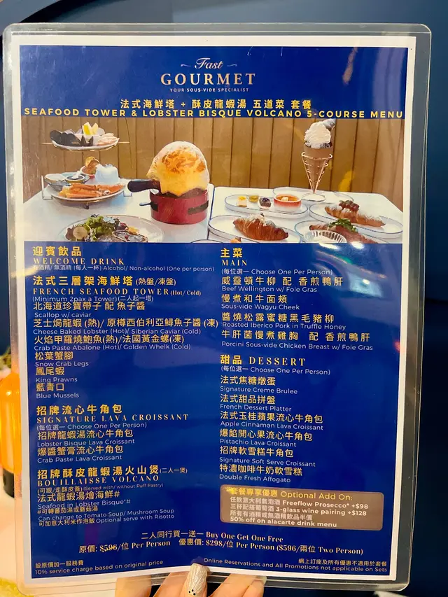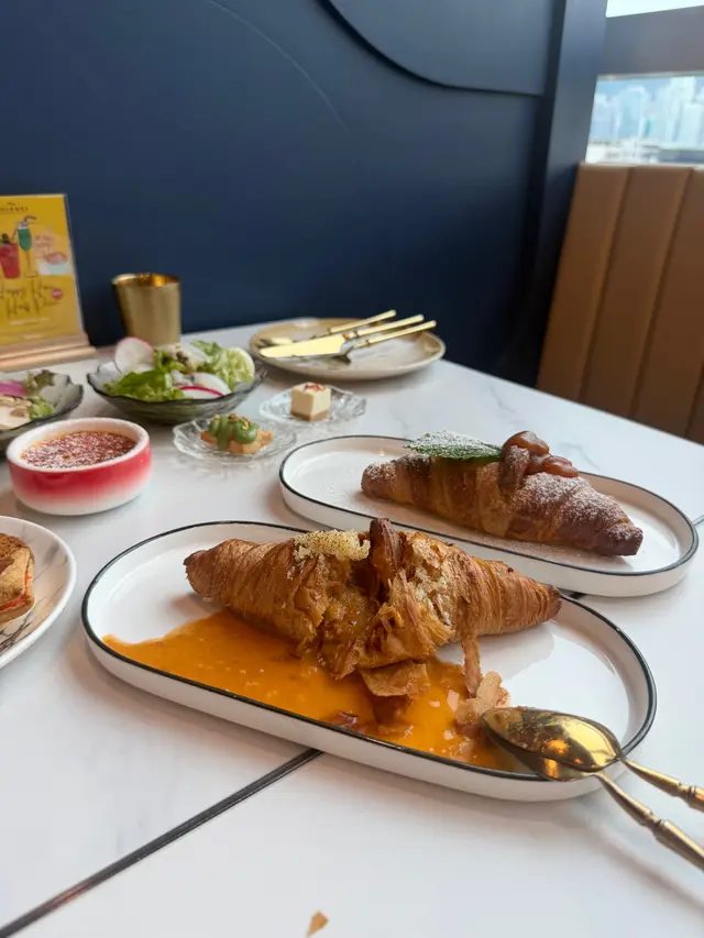 一直都有聽過呢間馳名流心牛角包🥐今次朋友請我來食生日大餐😘一次過試左2鹹2甜 4種口味好滿足😆而餐廳裝修風格都幾有情調💕法式海鮮塔+酥皮龍蝦湯五道菜套餐 $596法式三層架海鮮塔 (熱盤)第一層:北海道珍寶帶子配魚子醬:大大粒香煎帶子肉質鮮甜,配魚子醬的鹹香,呢個組合是完美配搭第二層:火焰甲羅燒鮑魚:甲羅燒味道濃郁,鮑魚鮮甜彈牙鳳尾蝦🦐:經調味好的鳳尾蝦爽口彈牙,食落香辣惹味藍青口🦪:4隻味道唔錯的青口第三層:芝士焗龍蝦🦞:半邊龍蝦塗滿芝士焗出來,啖啖肉松葉蟹腳🦀:蟹腳無太多肉,相對地有啲遜色招牌流心牛角包🥐招牌龍蝦湯流心牛角包🦞🥐牛角包焗得好鬆化,一切開裡面龍蝦湯流出來爆醬蟹膏流心牛角包🦀🥐金黃酥脆的牛角包包住滿滿的內餡,蟹膏味道香濃招牌酥皮龍蝦湯火山煲🦞🦐🐟🍲法式龍蝦湯燴海鮮:上菜時附上一支鎚仔,因顧住食海鮮塔的關係,搞到個酥皮塌左😅,燴海鮮有魚🐟,八爪魚🐙,仲有勝瓜,菇菌🍄🟫及蘆筍等配料,龍蝦湯味道濃郁,加入意大利米作泡飯,米飯有咬口,整體層次感豐富,增添風味主菜醬燒松露蜜糖黑毛豬柳🐷黑毛豬柳份量唔多,但燒出來好香,肉質軟腍配埋蘋果醬酸酸甜甜好解膩,沙律菜🥗配黑醋汁好滋味牛肝菌慢煮雞胸配香煎鴨肝🐓🦆慢煮雞胸肉質鮮嫩,後來發現餐廳比漏左香煎鴨肝,用另一隻碟補返,雞胸併鴨肝一齊食都幾香,仲有沙律菜伴碟甜品招牌軟雪糕牛角包🍦🥐好香濃又幼滑的牛奶軟雪糕🍦,牛角包🥐口感更香脆可口,朋友喺OpenRice訂位時註明慶祝生日,就係隻碟寫上生日字句🥳爆餡開心果流心牛角包🥐牛角包外脆內軟,中間夾住大量開心果醬,味道香濃,開心果控唔好錯過🤣白桃芝味特飲🍑🍹表面有一層厚厚芝士奶蓋但唔算好鹹香,不過飲到好濃郁白桃味🍑洋甘菊茶🌼🍵…查看更多