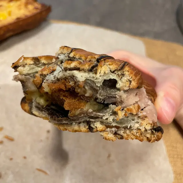 已經幫襯過享樂烘焙好多次今日買咗三款唔同嘅pastry首先係最近大熱嘅開心果千層酥一買完即刻忍唔住就食咗,所以冇特別整熱佢面頭有好多開心果碎,入面有好濃郁嘅開心果醬食到最尾可能會覺得有少少漏,但係成個真係好濃郁嘅開心果味好好味🥰🥰🥰但係今次最鍾意嘅都係大甲芋泥肉鬆酥我用焗爐180度加熱咗5分鐘放涼咗一陣就開始食芋泥同埋肉鬆都係勁配搭而且個酥皮加熱咗之後勁脆好夾,好好味最後仲試咗呢個芝士法包佢上面有啲粟米粒,所以甜甜地一樣加熱咗先食,所以去到第二日都唔會太硬查看更多