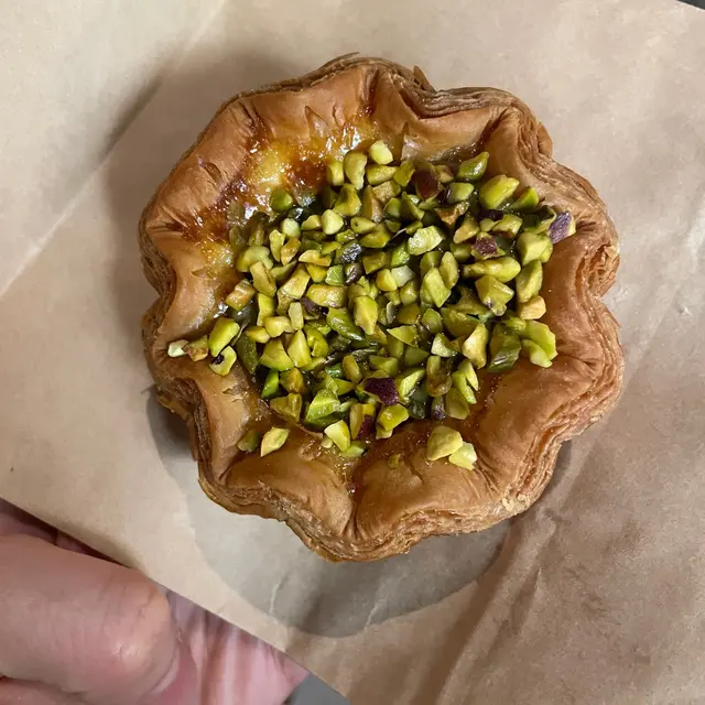 每次見到有享樂依個名出現無論喺邊區邊間分店我都會不由自主咁走入去佢地嘅麻糬Bagel真係好啱我口味好鐘意佢軟身嘅麻糬好煙韌但又唔痴牙今次見到佢出左開心果太陽餅我都算係少少開心果控好似篤中左我心咁開心果雖然依家一街都係但整得好食能夠帶出到開心果嘅色!香!味!出黎真係唔易買左即刻試忍唔到口開心果味唔夠出但唔係完全無可能本身期望有d大餅身皮一般中間部位唔太似太陽餅咁以價錢同本身有嘅期望值黎講有小小失望。查看更多