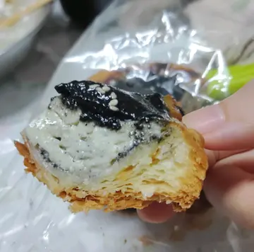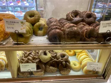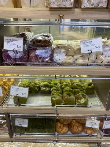 同事推介呢间bakery,所以试吓我买左黑芝麻酥皮挞($28)同开心果麻糬牛角包($22)啲开心果牛角包摆左喺抹茶牛角包隔离,大家都系绿色,好易拎错,开心果牛角包上面有啲开心果碎以作分辨开心果牛角包个样都几靓,个包上面有啲类似菠萝包皮的脆脆,中间夹左层薄薄地嘅麻糬同开心果酱,个牛角包中间有好多窿窿,成个presentation 好靓。不过可能冻左,我食唔到牛角包同佢上面啲脆脆的酥脆,有少少韧。本身个牛角包无乜味,中间啲开心果酱甜甜地,为个包加左啲味,但开心果味唔系好出,中间旧麻糬软腍腍咁。至于个黑芝麻挞,佢个挞本身几高身,上面有层流质嘅黑芝麻酱。酥皮本身比牛角包松脆,切落去仲会shap shap声,啲芝麻酱本身好甜,不过加埋酥皮同芝麻蛋浆就岩岩好,就系啲蛋浆唔够滑啰。闻说啲bagel 好出名,下次再试吓…查看更多