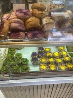 同事推介呢间bakery,所以试吓我买左黑芝麻酥皮挞($28)同开心果麻糬牛角包($22)啲开心果牛角包摆左喺抹茶牛角包隔离,大家都系绿色,好易拎错,开心果牛角包上面有啲开心果碎以作分辨开心果牛角包个样都几靓,个包上面有啲类似菠萝包皮的脆脆,中间夹左层薄薄地嘅麻糬同开心果酱,个牛角包中间有好多窿窿,成个presentation 好靓。不过可能冻左,我食唔到牛角包同佢上面啲脆脆的酥脆,有少少韧。本身个牛角包无乜味,中间啲开心果酱甜甜地,为个包加左啲味,但开心果味唔系好出,中间旧麻糬软腍腍咁。至于个黑芝麻挞,佢个挞本身几高身,上面有层流质嘅黑芝麻酱。酥皮本身比牛角包松脆,切落去仲会shap shap声,啲芝麻酱本身好甜,不过加埋酥皮同芝麻蛋浆就岩岩好,就系啲蛋浆唔够滑啰。闻说啲bagel 好出名,下次再试吓