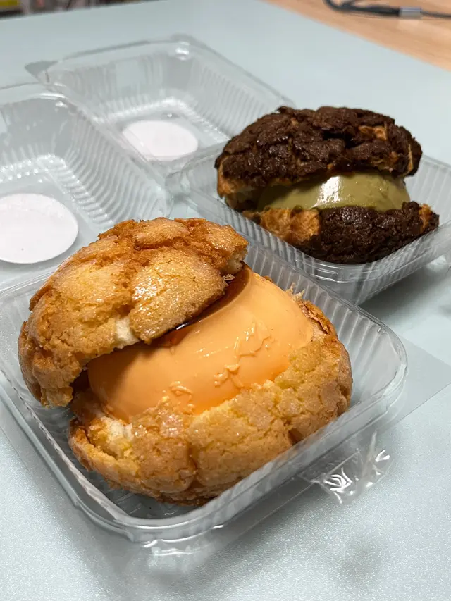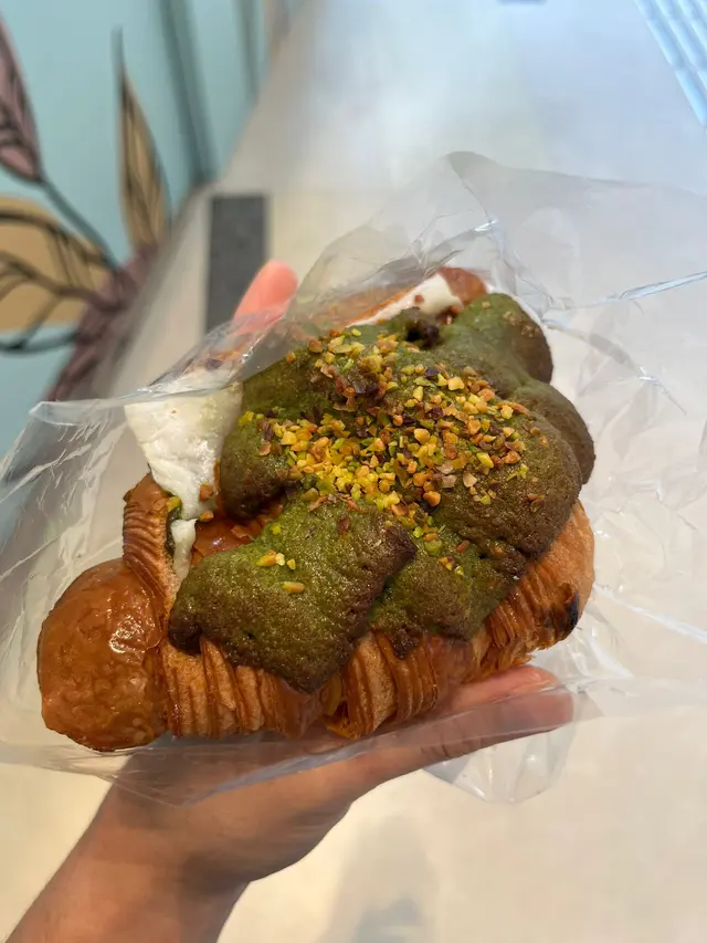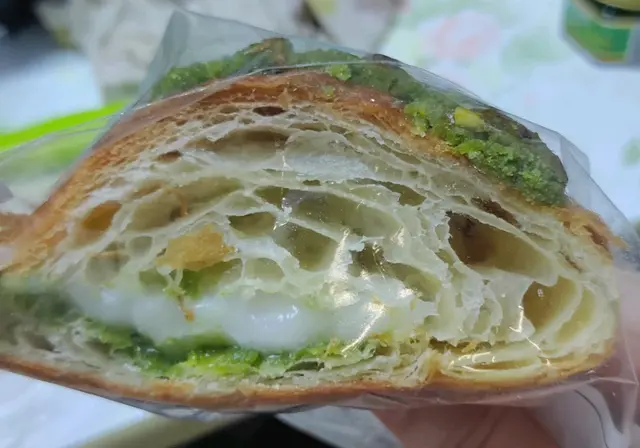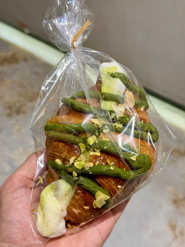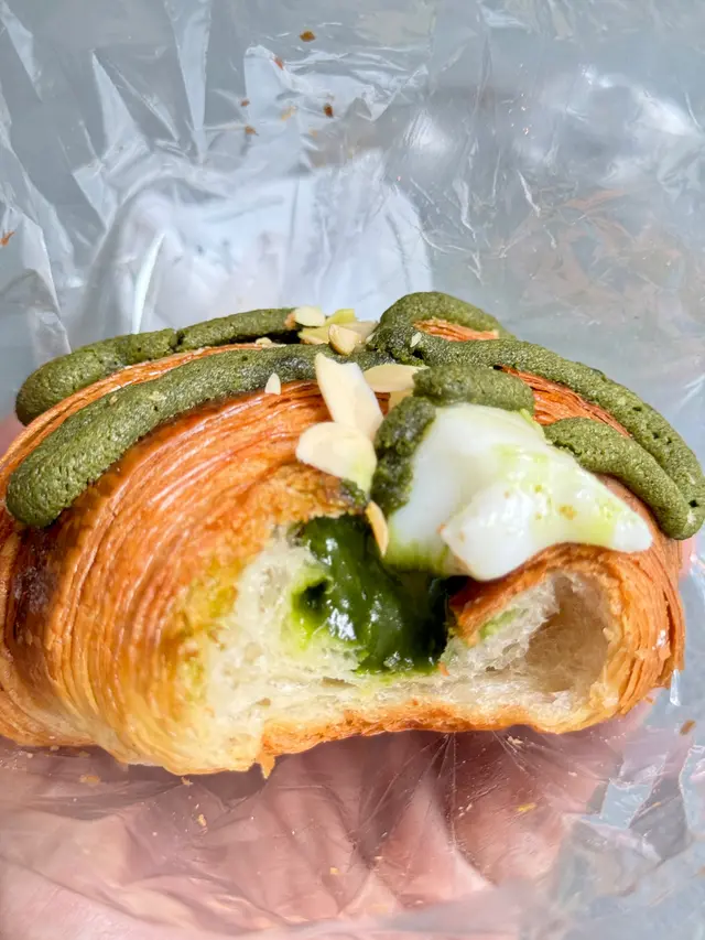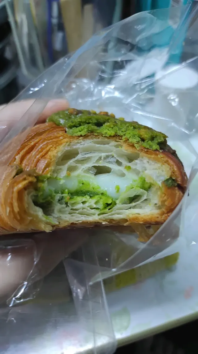 同事推介呢間bakery,所以試吓我買左黑芝麻酥皮撻($28)同開心果麻糬牛角包($22)啲開心果牛角包擺左喺抹茶牛角包隔離,大家都係綠色,好易拎錯,開心果牛角包上面有啲開心果碎以作分辨開心果牛角包個樣都幾靚,個包上面有啲類似菠蘿包皮的脆脆,中間夾左層薄薄地嘅麻糬同開心果醬,個牛角包中間有好多窿窿,成個presentation 好靚。不過可能凍左,我食唔到牛角包同佢上面啲脆脆的酥脆,有少少韌。本身個牛角包無乜味,中間啲開心果醬甜甜地,為個包加左啲味,但開心果味唔係好出,中間舊麻糬軟腍腍咁。至於個黑芝麻撻,佢個撻本身幾高身,上面有層流質嘅黑芝麻醬。酥皮本身比牛角包鬆脆,切落去仲會shap shap聲,啲芝麻醬本身好甜,不過加埋酥皮同芝麻蛋漿就岩岩好,就係啲蛋漿唔夠滑囉。聞說啲bagel 好出名,下次再試吓…查看更多