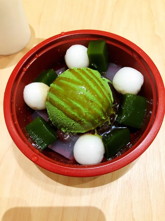 好累,在園方逛街,等朋友一起吃飯,有時間坐下,便選擇了這家日式甜品店,一色抹茶味的甜品,滿眼都是清新可愛的綠色,或配白玉或配紅豆,讓人垂涎欲滴,今天又是清明節,想吃紅豆青團的心願只能靠它來完成,我點了抹茶白玉紅豆,抹茶雪糕真的很有茶味,不甜很冰涼可口,紅豆是甜而不膩,煮的爛爛的入口即融的感覺,兩樣東西混在一起吃好好味!查看更多