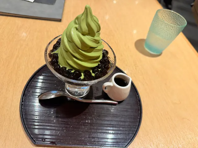 間唔中都會嚟呢間店吃抹茶雪糕甜品,今日叫了珍珠抹茶軟雪糕,$58加一,用手機下單。份量不少的抹茶軟雪糕底下有珍珠、cream和脆米,還有一小杯黑糖漿。 抹茶雪糕很夠那份綠茶香味和茶的微苦味,味道很正,珍珠夠冧,脆米夠脆,很美味的一杯雪糕甜品。查看更多