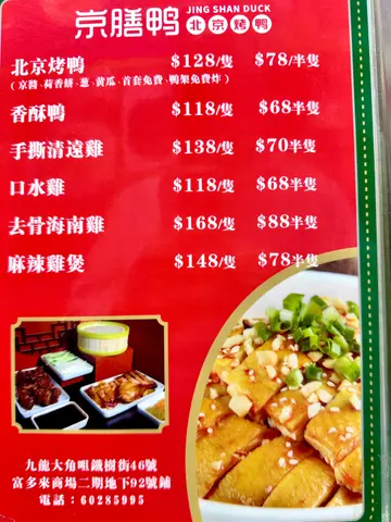 系外卖app见到有片皮鸭叫心谂 lunch都食到片皮鸭咁正?后尾见到原来都几近公司,决定行去食去到原来系外卖店黎,无得堂食咁都照买半只返去试下啦另外见到手撕鸡饭都好平$38但唔知份量系点我买左半只片皮鸭$78有荷香饼,青瓜🥒葱丝仲有返少少鸭壳调左味咁一盒手套一对咁一袋几整齐咁拎左返公司现场见到佢片都觉得只鸭有d细食一片无加酱既 皮下无乜脂肪,有少少脆,都有鸭香加左酱同青瓜就好味d 个鸭壳睇住佢调味,食落香好多不过一个人食可能未必够饱🤣味道正正常常,但胜在方便,下次想食都会再买京膳鸭 (大角咀)大角咀铁树街46号富多来商场二期地下92号舖…Read More
