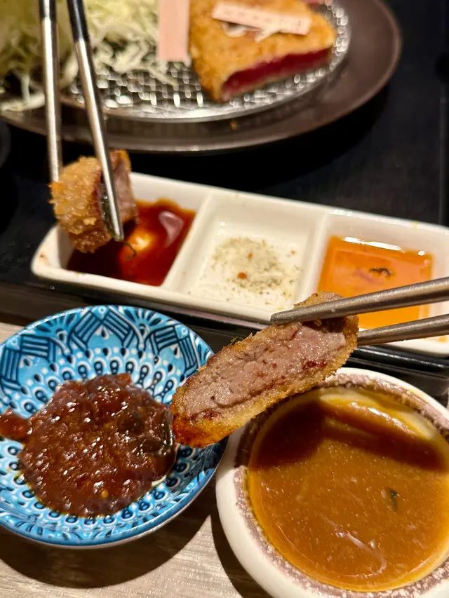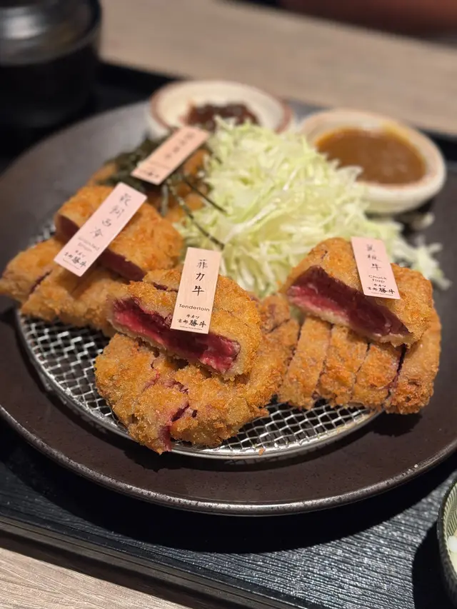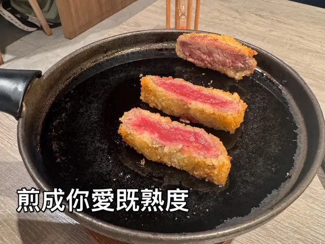 上菜時店員仲會俾個小煎pan 🔥,可以 自己控制熟度。外層麵包糠香脆但唔厚重,輕輕煎到啱啱半熟、外脆內嫩,肉汁鎖得幾好,配埋沾醬同蛋汁,牛味即刻再提升一級🤤 四款牛之中,我嘅最愛係菲力牛,厚切但一啖咬落去超嫩滑,又帶返陣濃牛香,啱晒鍾意Juicy口感嘅人