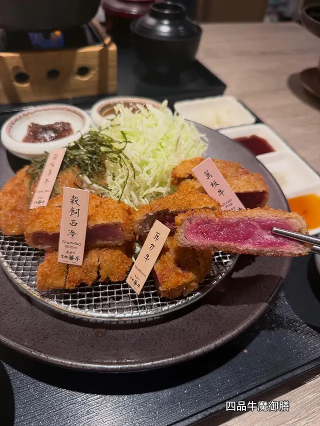最近同朋友嚟到AIRSIDE覓食,揀咗呢間主打吉烈牛嘅日本餐廳,環境偏日系簡約,又唔會擠迫,成個用餐氣氛都幾chill~🥩 四品牛魔御膳(Signature 必試!)作為餐廳嘅招牌,嚟到點都要試!一次過食到 四個部位嘅牛:穀飼西冷、翼板、醬咪薄牛、菲力牛,CP值超高~而且包白飯、椰菜同湯,食肉之餘又唔會太有罪惡感😋