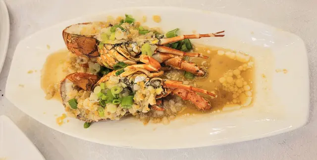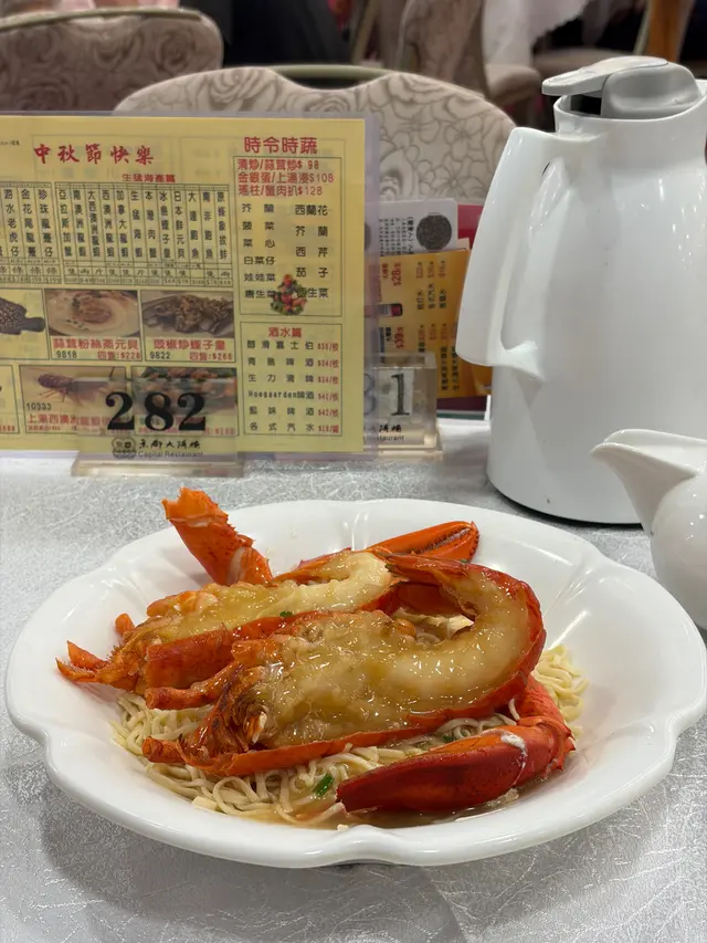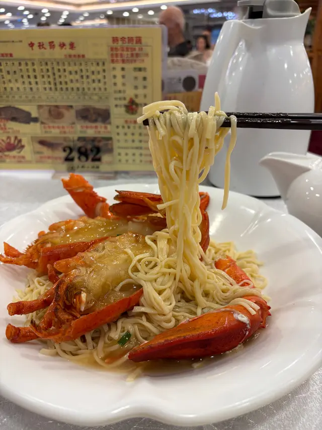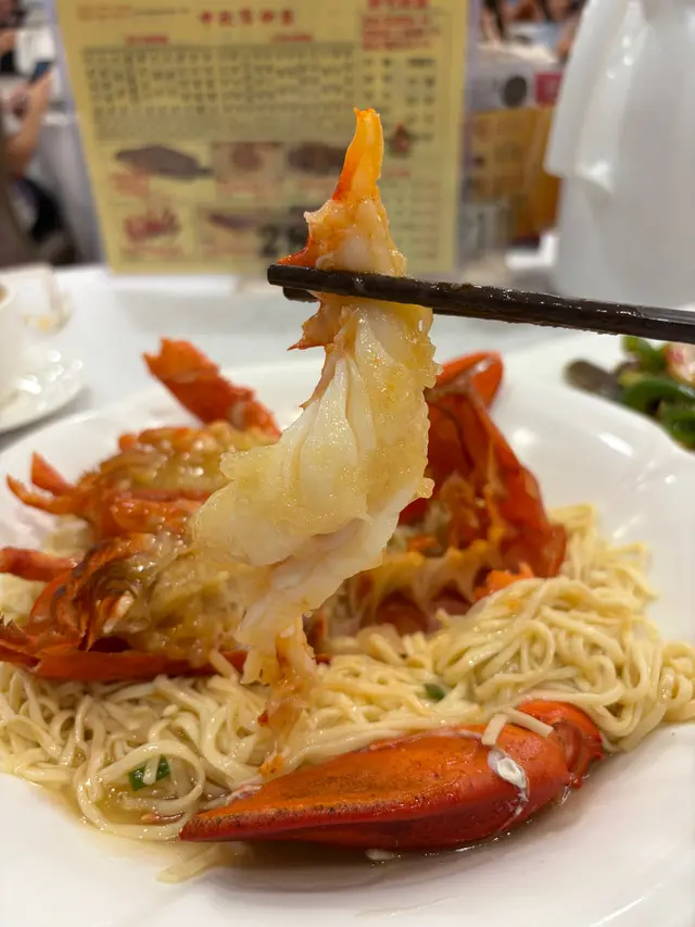 上湯焗 澳洲龍蝦伊麵龍蝦選用澳洲貨色,肉質爽彈,鮮甜之味與上湯交融,湯汁吸入伊麵之中,彈牙的伊麵散發著龍蝦與上湯的濃郁氣息。不單是主角龍蝦出眾,連配角伊麵也令人齒頰留香。