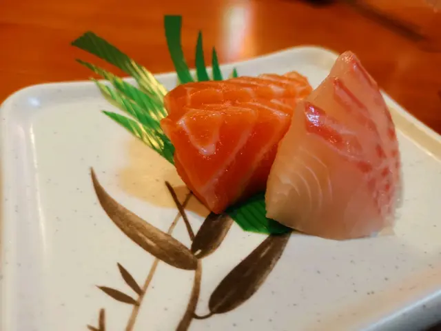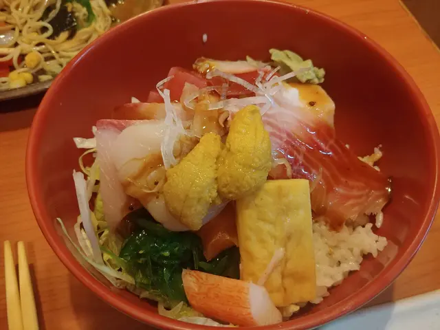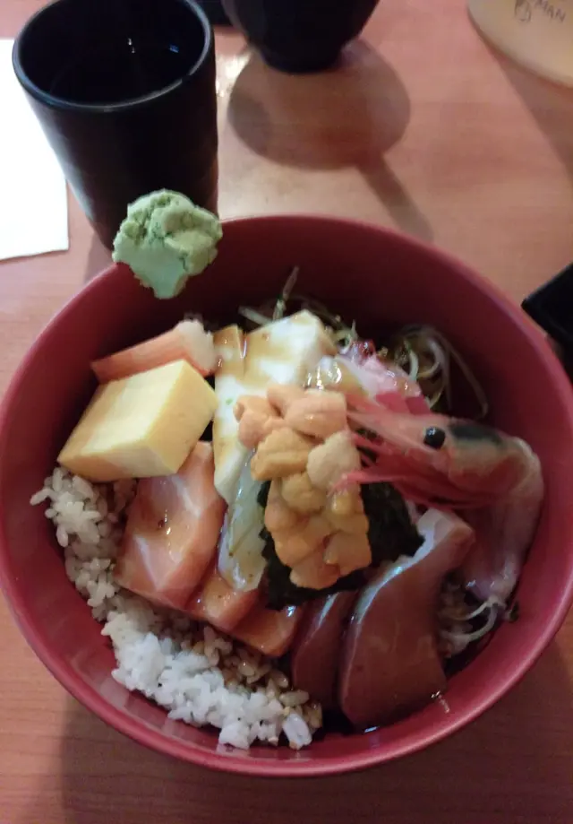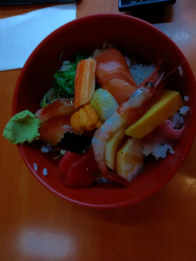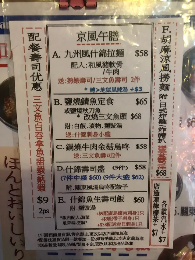 環境安靜,空内燈光較為陰暗,因為早到不用等位,遲少許已經坐滿了,門口亦有幾枱客人在等候。今天和同事午飯,由於我不吃魚生類食物,所以點了日式豬扒定食。她則點了拉麵定食。🌟日式炸豬扒定食🍺配漬物、湯、飯、沙律豬扒十分酥脆,沙律菜上有一大坨沙律醬,如果菜多些,醬少些會比較好。🌟拉麵定食🍤配有炸蝦、甜蝦壽司。炸蝦亦是十分酥脆,甜蝦其實是第一次嘗試,想不到真的是蠻甜的~定食幾豐富下,份量亦剛剛好、夠飽的~甜蝦是蠻推薦的,是十分清甜。炸物也十分酥脆~…查看更多