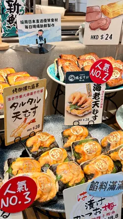 這個和上一款有點大同小異,餡料變為海老炸蝦天婦羅。海老炸蝦原隻炸香,有彈牙感。4款飯糰中間都夾上玉子燒,柔軟重蛋香