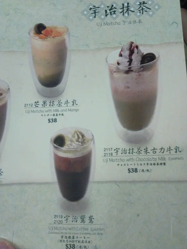 Came here a few years ago and the food was crap but went here again because I was thirsty.There were more choices for food and drinks so I ended up getting a dessert as well.The floor was not very clean because there was lots of rice all over the place.★☆★☆★☆★☆★☆★☆★☆★☆Uji matcha with chocolate milk:The drink tasted very powdery with a mix of green powder and chocolate powder.It was pleasant to drink but it wasn’t impressive.★☆★☆★☆★☆★☆★☆★☆★☆Uji matcha beancurd pudding:Beneath the black biscuit crumbs was matcha tofu which had a light matcha taste and no tofu taste.There was a layer of cream in the middle which wasn’t necesssary and ruined the taste.★☆★☆★☆★☆★☆★☆★☆★☆◎ⓢⓤⓟⓔⓡⓢⓤⓟⓔⓡⓖⓘⓡⓛ◎The bill: $7XService: OKService charge: 10%Yummy factor: Could be betterSweetness levels: just rightNapkins provided: yesToilets: noNoise levels: NoisyGlass of water provided: yesEnglish Menu: YesAir Conditioning: Yes◎ⓢⓤⓟⓔⓡⓢⓤⓟⓔⓡⓖⓘⓡⓛ◎…查看更多