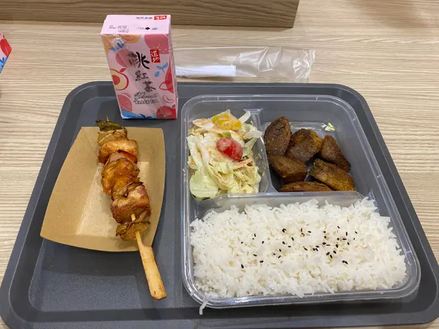 新公司在牛頭角附近,有日收工老公接我一齊晚飯,於是在周圍覓食。行下行下去到德寶商場,發現裏面有個小小food court,入面都有好多提供不同菜式嘅餐廳小店,見到最吸引嘅係有日式串燒嘅呢一間。細望menu,發現食物款式好多,而且價錢都非常之平民化,特別係每日供應嘅套餐,當中燒牛舌便當連紙包飲品及小食,只需要$48!真係非常之超值,於是試一試。由於食物即叫即做,所以都要等少少時間,但絕對值得!因為牛舌份量好多,而且非常厚身有口感,同時都好淋,配埋香料非常惹味!小食亦不馬虎,我們點了雞肉串,有齊三色椒同洋蔥,雞肉一啲都唔嚡,好好味!