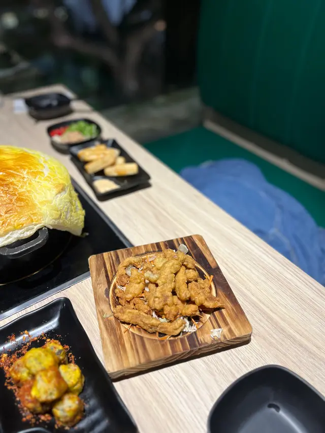 醬料及餐前小食(芫荽燒賣) $20.00 有別於平時的小食,是脆脆的炸芫荽燒賣,等待其間可以醫醫肚,芫荽味都明顯,喜歡芫荽的朋友一定喜歡。酥皮龍鳳鍋 BB辣 $298.00餐廳主打的特色火鍋,怎麼想得出這麼有意思的菜式。酥脆的外皮包裹着鮮嫩的龍蝦和雞肉,店員幫手一切開,酥皮泡在濃烈的龍蝦和雞肉湯中吸滿湯汁,非常邪惡🤤整體辣度適中。香酥肉 $28.00外皮炸得酥脆,內裡肉質鮮嫩多汁,吃得出有麻辣,和梅子粉。南國糍粑 $28.00口感鬆軟,甜度適中,配上黑糖和黃豆粉更加美味。🐮本地新鮮手切牛頸脊 $298.0🐮和牛三寶(後腰、上前、極黑板腱)$388.00🐮至尊牛三拼(本地牛、牛小排、和牛)$368.00口感豐富,肉質細嫩,各種牛肉的風味各有不同,但質素一定在平衡值之上,來貨有素質。海陸空拼盤(黑豚肉、雞件、廣島蠔丶虎蝦)$198.00擺放得精緻,份量不算多,但勝在夠新鮮。皇帝菜 $38.0、翡翠苗 $38.00、生菜 $28.00、金菇菜 $28.00蔬菜清新爽口,口感嫩滑,搭配上醬料更加美味。罐裝汽水 $15.00查看更多