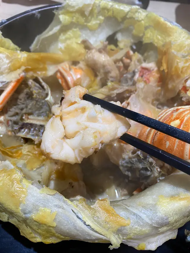 返完一日工,食返餐好嘅慰勞下自己,係必須嘅!今日約朋友放工去尖沙咀食晚飯,事關係網上見到個酥皮雞煲非常吸引😍我哋三個人就去咗呢間餐廳食,環境舒適,位置好坐、闊落👍🏻 啱晒收工之後鬆一鬆!我哋個個做咗大胃王,食咗超多嘢🤤超滿足每人比多$20 ,就可以試埋店家提供嘅惹味醬料及餐前小食。正!雖然有餐前小食,不過由於實在太肚餓了,我哋仲叫多咗兩個小食:·香酥肉 $28.00味道都幾得意,酸酸地又有點麻的感覺,好特別!不妨一試!·南國糍粑 $28.00一食就不自覺「嗯~」咗一聲,堅好食!紅糖漿配黃豆粉真係好夾,糍粑口感煙韌👍🏻👍🏻一定要試🌟終於到主角出場:酥皮龍鳳鍋 (BB辣) $298.00個酥皮一出場,不!得!了!是金黃色的😍烤焗得勁靚!不停打卡!店員哥哥幫手切開之後,裏面就非常多料,呢個龍鳳鍋係又有雞又有啖啖肉嘅龍蝦🦞如果唔想食龍蝦,都有淨雞煲選擇的👍🏻食完雞煲唔夠喉嘅話仲可以再打埋個邊爐,個人覺得性價比高的可以試吓以下呢幾款:·和牛三寶(後腰、上前、極黑板腱)$388.00·至尊牛三拼(本地牛、牛小排、和牛)$368.00·海陸空拼盤(肥牛/黑豚肉、雞件、廣島蠔丶虎蝦)$198.00查看更多