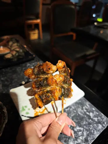 今次来到The Hart嘅人生有限杯 店内装潢型格带工业风几有气氛 座位宽敞 抽风系统做得唔错 坐得舒服唔会油烟攻身👍🏻钟意坐吧枱 可以睇住店员即叫即烧各款串烧🔥热辣辣上枱 款式多样 仲有特色创意料理🤩特别以下几款串烧✨海鲜推介泰式烧墨鱼须爽口弹牙 配上泰式辣酱酸甜开胃🦑九肚鱼炸得外脆内嫩 配上椒盐同紫菜碎 沾埋泰式辣酱更有风味🐟盐烧白鳝鱼皮香脆 鱼肉鲜甜 烧得恰到好处✨肉类必食盐烧西班牙五花腩🐷肥瘦相间 烧到金黄香脆厚切牛舌👅肉质爽嫩牛味浓郁 荔枝豚肉卷🐷 清甜荔枝配咸香豚肉 口感特别 味噌猪颈肉味噌腌得入味 肉质弹牙🐔免治鸡肉棒口感丰富 蘸日本蛋浆更滑溜🍳✨创意菜式焦糖菠萝鹅肝酱多士🍍菠萝清甜 鹅肝酱浓郁 多士脆口🍞多士烘到香脆 夹住冰冻既云呢拿雪糕 冷热交融好邪恶✨特色饮品饮品选择几多🍋试左青柠梳打清新解腻 🍍菠萝可以必思果香清甜📍人生有限杯 (尖沙咀)尖沙咀赫德道4号The Hart 3楼…查看更多