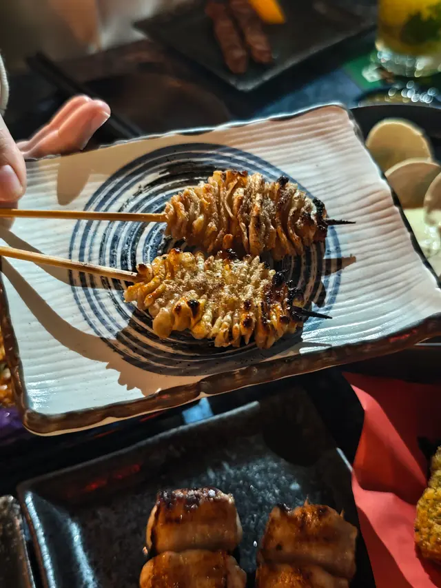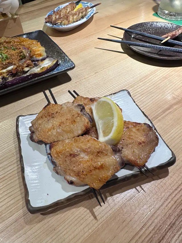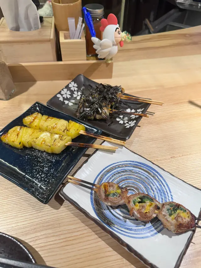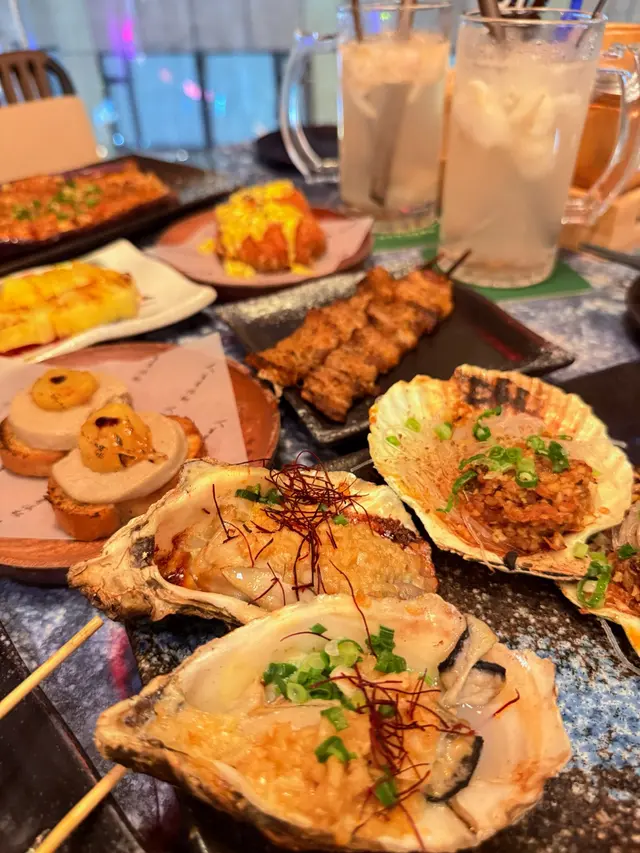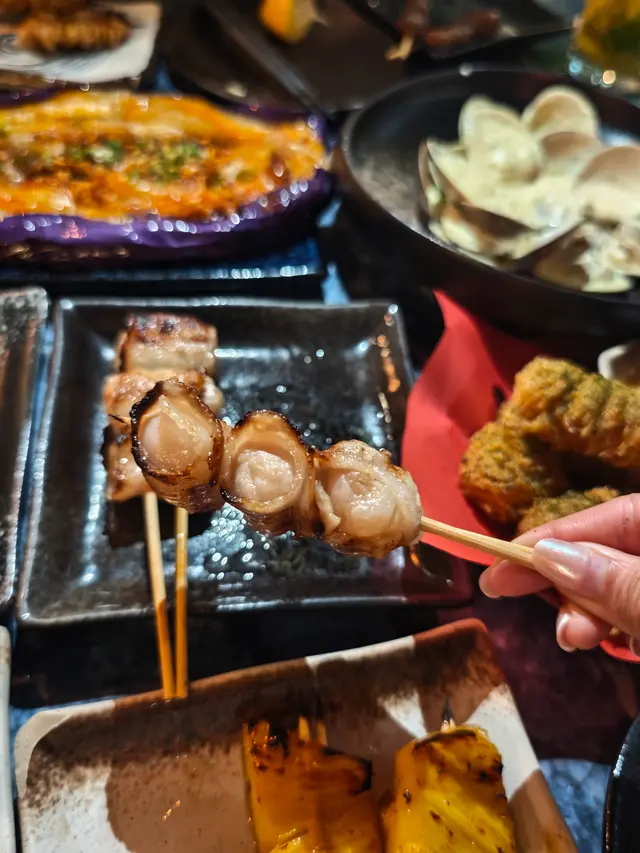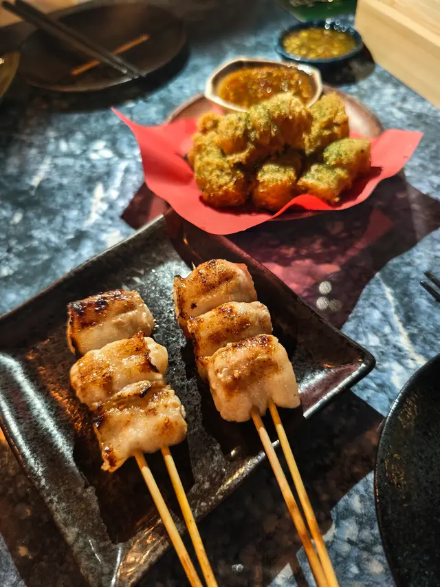 近期愛上食串燒,約咗幾個老best去尖沙咀呢間串燒店,環境大,食物又多選擇,最啱一班人食下傾下! 🦪蒜蓉燒蠔(2隻) 蒜蓉提升生蠔鮮味,肥美鮮甜又多汁!🐙泰式燒墨魚鬚好有嚼勁,點上泰式醬汁,更惹味!🍢鹽燒西班牙五花腩~爽口彈牙,油脂豐富又唔油膩!🍢雞腎🍢雞軟骨 肉質爽彈唔韌,爽脆有嚼勁!好滋味!🍢燒雞皮烤到好脆又香口! 🍢汁燒牛肋肉牛肋肉嫩,牛味濃!香氣撲鼻!🍢牛舌燒得啱啱好,咬落爽彈! 🍆茄子燒茄子大大條軟綿綿,微辣過癮又惹味!🦪白酒忌廉煮蜆大大隻冇沙,好鮮甜,配搭醬汁真係冇得輸!🍝明太子忌廉烏冬creamy醬汁夠濃郁,烏冬掛滿汁好好味,食到停唔到口! 🥬雞油豆苗豆苗充滿雞油香,翠嫩! 🍍蜜糖菠蘿 上面焦糖微焦,酸酸甜甜好Juicy!🧇焦糖雪糕多士香脆焦糖多士,夾住厚厚冰凍雪糕 ,真係冇得輸,本人大力推介!🍋🟩薄荷桔仔gin🍋🟩桔仔薄荷梳打兩杯都清凉解膩,配串燒啱晒! 🍋青檸菠蘿gin🍋手打檸檬茶兩杯檸檬清香,飲落酸酸甜甜,清爽!…查看更多