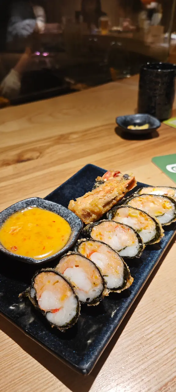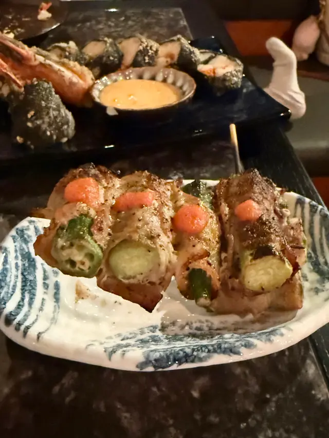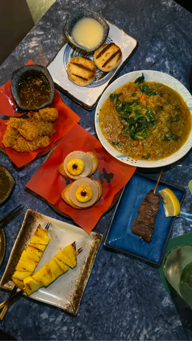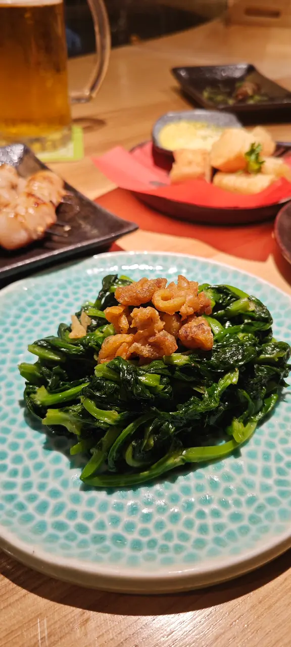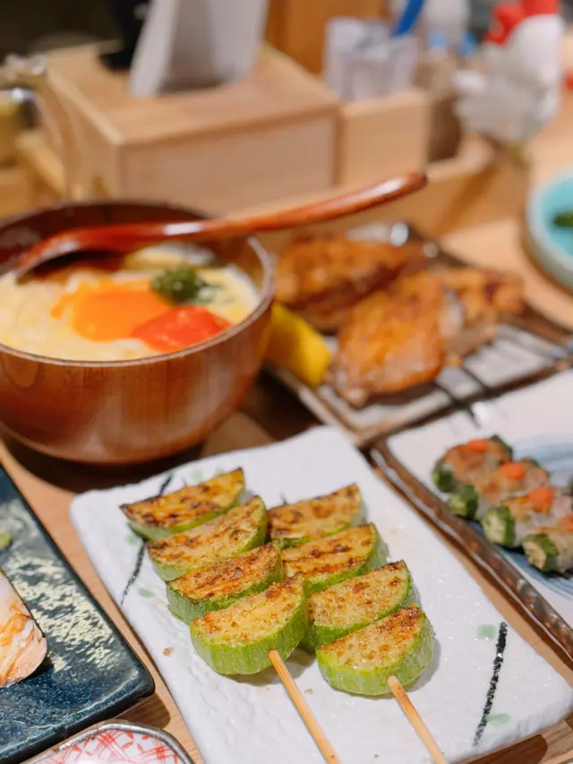 近期愛上食串燒,約咗幾個老best去尖沙咀呢間串燒店,環境大,食物又多選擇,最啱一班人食下傾下! 🦪蒜蓉燒蠔(2隻) 蒜蓉提升生蠔鮮味,肥美鮮甜又多汁!🐙泰式燒墨魚鬚好有嚼勁,點上泰式醬汁,更惹味!🍢鹽燒西班牙五花腩~爽口彈牙,油脂豐富又唔油膩!🍢雞腎🍢雞軟骨 肉質爽彈唔韌,爽脆有嚼勁!好滋味!🍢燒雞皮烤到好脆又香口! 🍢汁燒牛肋肉牛肋肉嫩,牛味濃!香氣撲鼻!🍢牛舌燒得啱啱好,咬落爽彈! 🍆茄子燒茄子大大條軟綿綿,微辣過癮又惹味!🦪白酒忌廉煮蜆大大隻冇沙,好鮮甜,配搭醬汁真係冇得輸!🍝明太子忌廉烏冬creamy醬汁夠濃郁,烏冬掛滿汁好好味,食到停唔到口! 🥬雞油豆苗豆苗充滿雞油香,翠嫩! 🍍蜜糖菠蘿 上面焦糖微焦,酸酸甜甜好Juicy!🧇焦糖雪糕多士香脆焦糖多士,夾住厚厚冰凍雪糕 ,真係冇得輸,本人大力推介!🍋🟩薄荷桔仔gin🍋🟩桔仔薄荷梳打兩杯都清凉解膩,配串燒啱晒! 🍋青檸菠蘿gin🍋手打檸檬茶兩杯檸檬清香,飲落酸酸甜甜,清爽!…查看更多