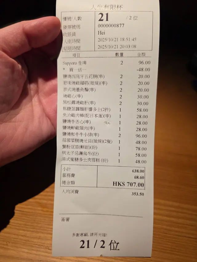 《人生有限杯》真心係旺角少有高質氣氛串燒店食材新鮮、火候準、創意夠、環境又舒服串燒全部都燒得靚、唔會燶、唔會鹹過龍無論係放工想歎串燒+飲杯, 定約朋友食餐開心飯, 都好啱嚟呢度