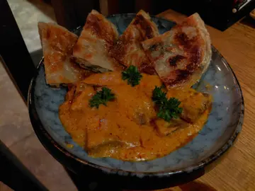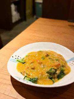墨鱼滑+紫菜+大虾墨鱼滑的鲜味与紫菜的鲜香完美融合,大虾的加入更是提升了整体的风味,让人惊喜。咖哩牛舌手抓饼牛舌软嫩,咖哩的香气浓郁,手抓饼的口感也十分酥脆,让人忍不住多吃几口。