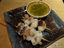 泰式烧墨鱼须墨鱼须的烧烤香味浓郁,搭配调味酱,十分开胃。
