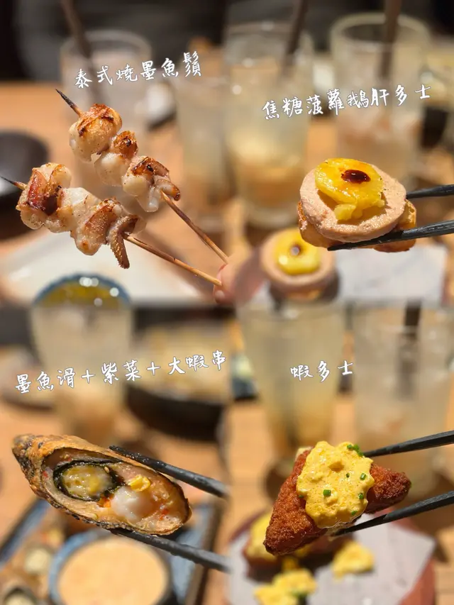 🍆蒜蓉菜脯燒茄子 🍍焦糖菠蘿鵝肝醬多士 🍗鹽燒雞腿肉 🥚紫菜鵪鶉蛋卷 🐥鹽燒雞皮 🐷鹽燒西班牙五花腩 🥗流心蛋薯仔沙律 🍢免治雞肉棒 🍜明太子忌廉烏冬