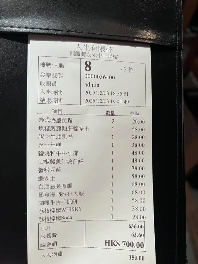 人生有限杯.串燒店 (铜锣湾) 网址: https://s.openrice.com/QrLS0CcCD00 地址: 香港銅鑼灣登龍街28號永光中心15樓 电话: +852 98087581