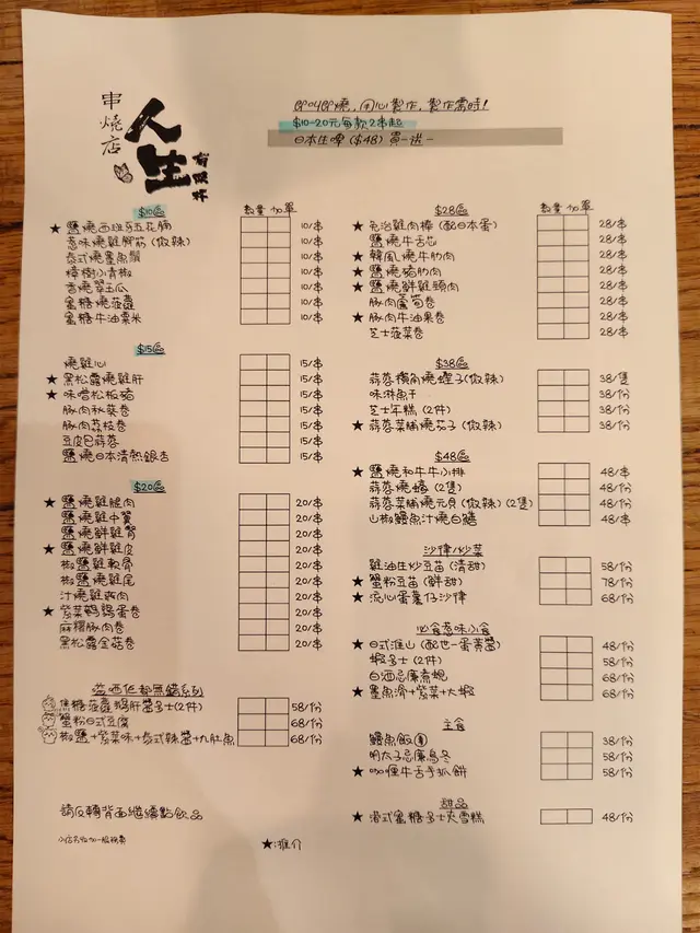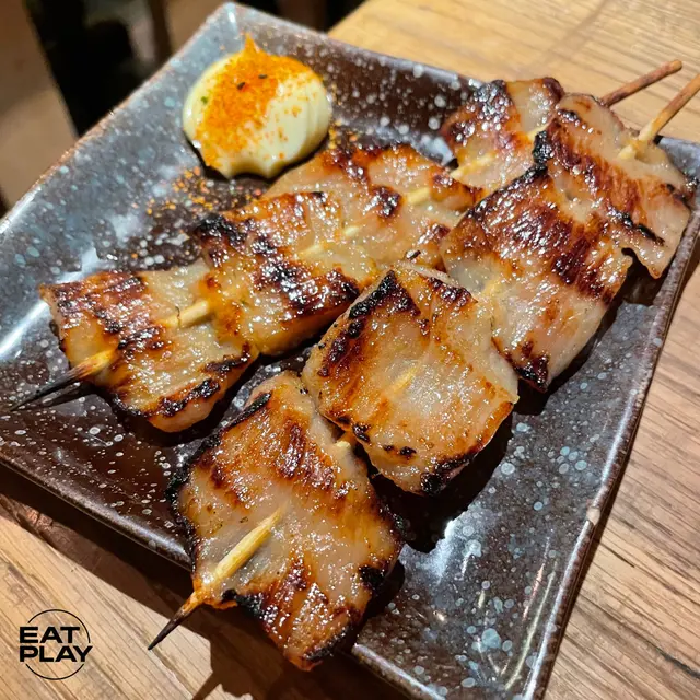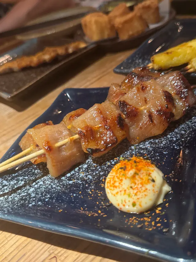 晚上來到位於銅鑼灣的人生有限杯串燒店吃晚餐。😁menu ☺鹽燒西班牙五花腩外焦內嫩,鹽燒的技術恰到好處,讓肉質保留了豐富的油脂,口感滑順。