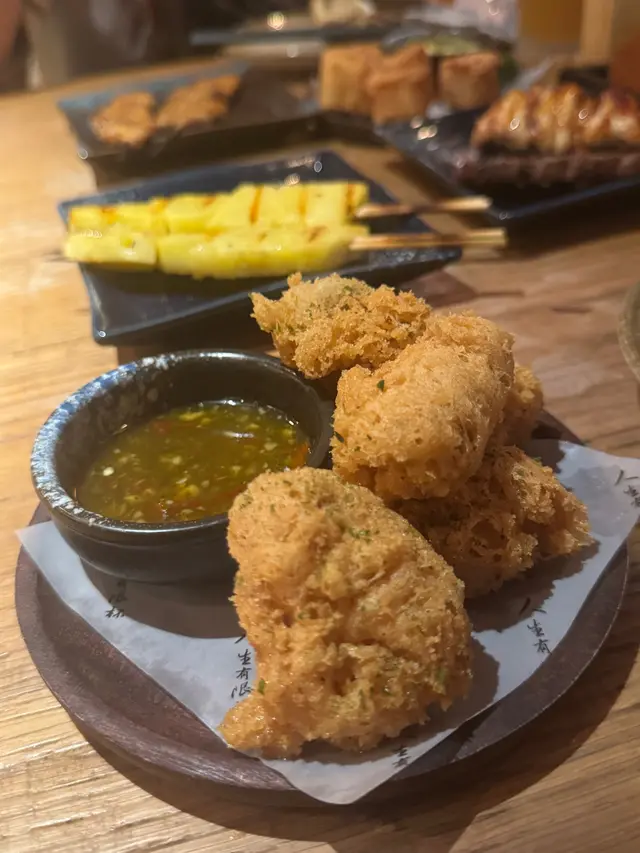 鹽燒雞中翼肉質鮮嫩,鹽燒的調味讓其味道更加突出。鹽燒鮮雞皮雞皮的香脆程度令人驚艷,鹽燒的調味讓其吃起來非常過癮。