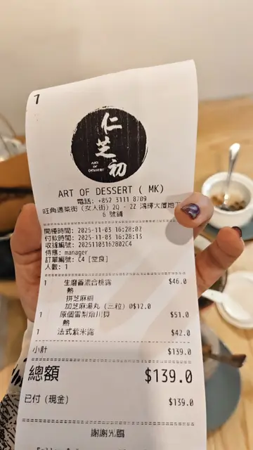 🎀旺角。经典港式甜品 五周年择骰仔游戏🎲🎀🪄店名* #仁芝初 🔮地址* 旺角通菜街2Q-2Z号鸿辉大厦地下6号舖 🔮🗾分店地区🗾 没有分店💰价钱$ 已加一 (2人)➖➖➖➖➖➖➖➖➖➖➖➖➖想睇更多同区推介👉地区搜寻🔍🗾#pickyme_旺角剩系食呢一类👉食物类型搜寻🔍🍜#pickyme_甜品➖➖➖➖➖➖➖➖➖➖➖➖➖🎵餐厅环境🎵这间位于旺角小巷内的糖水店,是不少旺角年轻人必食的宵夜港式糖水店。店铺空间宽敞明亮,设计简单但别有心思。店舖提供免费包场应援设计计画,每月都会变身“港中日韩台泰明星应援店”😙😙最近还举行五周年优惠,消费满$50可以玩掷骰仔游戏赢取配料或现金卷折扣,有兴趣可以一试!🍽️食物质素🍽️餐厅主打传统中式糖水,由90后店主拜师学艺,坚持用传统古法每日新鲜制作。糖水价钱亲民,大多在$30-$40左右,而且用料十足,诚意满满。👀评分💖💖💖💖🪄红糖撞奶 $28店舖全新甜品要试试!里面配搭很特别 有鲜芒果粒 醇滑椰奶 及Q弹红糖冻,口感滑溜又有层次,味道出奇地平衡。👀评分💖💖💖💖🪄紫薯芋蓉莲子西米露$35🪄原个雪梨炖川贝$51紫薯芋蓉莲子西米露的芋头味道浓郁,紫薯天然嘅紫色好靓,食落绵密满足,西米露增添咗口感,整体味道同卖相都值得一赞。原个雪梨相当足料,甜品很滋润,加入名贵川贝母及冰糖慢火细炖,很适合干燥秋冬食用,润肺又养颜~(5个💖为最高)✴️✴️✴️✴️✴️✴️✴️✴️✴️✴️✴️✴️✴️⚜️整体评级⚜️🎈味道评分*😋😋😋😋🎈环境质素*🎇🎇🎇🎇🎈抵食程度*💰💰💰💰💰🎈服务态度*💌💌💌💌💌…查看更多