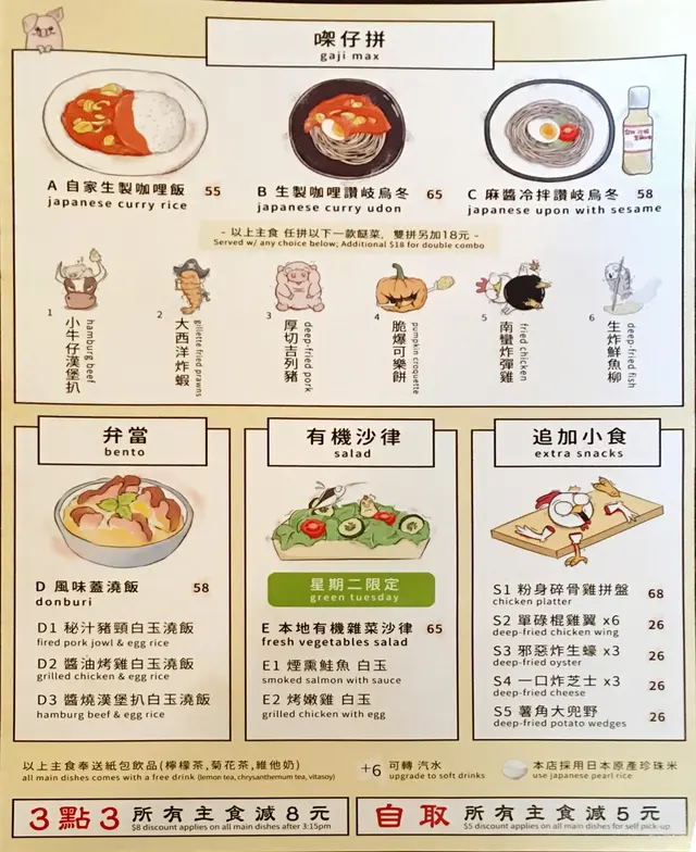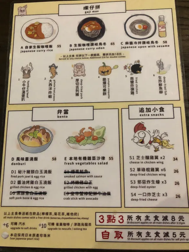 唔知大家有冇睇過杜汶澤既YellopenRice呢?其中一集就係介紹呢間《㗎仔飯》其實係杜汶澤介紹之前我已經食過一次喇!當日係下午一兩點,好多打工仔去食,店內座位唔算好多,始終係小店;店內氣氛好好,有個projector係到播緊周星馳電影,成間店既人一齊睇一齊笑~講返呢個咖哩讚歧烏冬($65),可以自由選配吉列豬扒/炸雞/炸蝦等等;以lunch嚟講呢個價錢都算唔平,份量就正正常常啦一整個烏冬,豬扒好食既,厚身,唔乾唔鞋,值得一讚!唯一可以改善既地方就係烏冬有點兒太硬,雖然讚歧烏冬本身質地係彈身啲,但都可以煮返耐少少~整體評分:8.5/10…查看更多