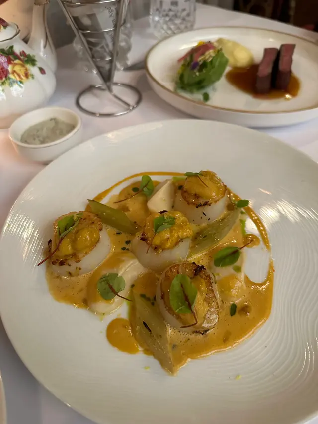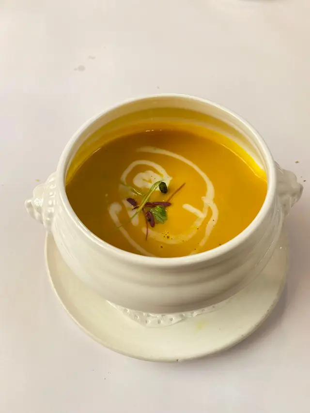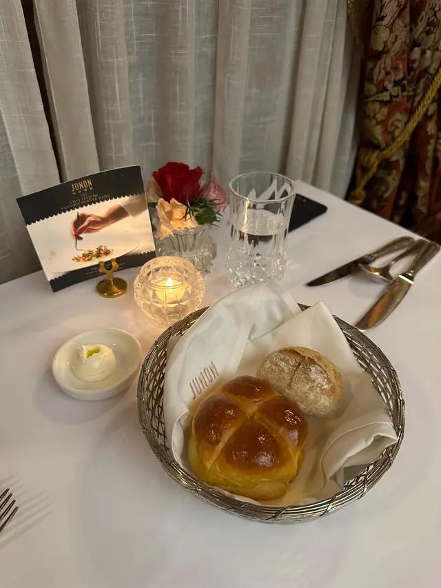 雖然唔係仙后餐廳嘅原址,裝修好有心思,典雅別緻,木制鋼琴、彩色玻璃窗、花紋窗簾布,濃厚嘅復古感,令食飯氣氛好好。服務相當到位,斟水上菜收碟都做得好,又有禮貌,值得一訪再訪!*Restaurant week lunch $248Heirloom tomatoes with vinaigrette, burrata cheese & olives布拉塔芝士鋪底,奶味淡淡,配油醋汁、橄欖。溫室蕃茄彩色好靚,一啲生番茄腥味都冇。完全係Caprese沙律2.0。Onion Soup, Emmental 法式洋蔥湯(+$28)洋蔥湯好香好濃,啖啖都係炒到焦化嘅洋蔥絲。表面有一片法包+厚厚嘅emmental芝士,索晒洋蔥湯嘅精華。Duck leg confit, three way of fennel, orange sauce, and cumin seed慢煮鴨髀皮脆肉香,肉厚又夠嫩但唔會過腍,絕對係我食過數一數二嘅鴨髀。配鮮橙醬、茴香醬,Coconut ice cream, passion fruit, hazelnut最底係榛果蛋糕底,配搭包滿榛子碎嘅椰青雪糕,同埋熱情果果蓉,酸甜酸甜,超級清爽,作為收尾非常好。…查看更多