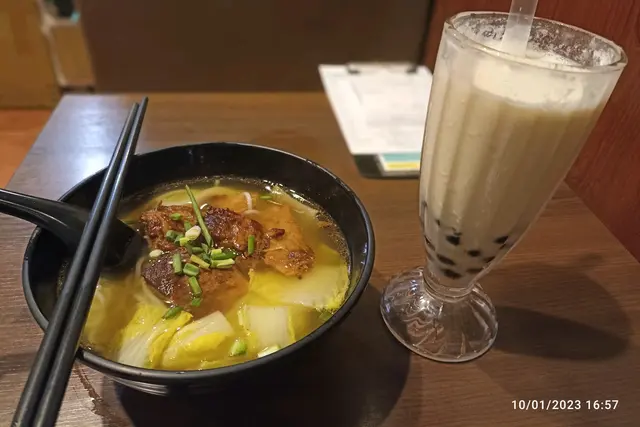 今晚同個friend揀餐廳,見想食台灣菜,又咁岩係西寶城下面,咁咪去食囖。入到去見間餐廳都幾細,少人係度食所以個環境幾chill,跟住我地入到去叫咗兩碗兵哥麵同飯。個飯配番茄就算尚可,中規中矩。但係兩碗兵哥麵真係令人大失所望。個分量又細,個牛肉又好難嚼。到野飲個part,杯朱古力比想象中淡,杯益力多同奶茶就平平淡淡,但我覺得唔抵20蚊。我係無諗到10年前就開既老餐廳到宜家個質素都唔抵價格,但反而又幾多客幫襯。反正無論如何, 我都覺得哩餐飯total 225 HKD真係有d智商稅,哩個係本人個人意見,大家見仁見智。祝大家搵到好味既餐廳。