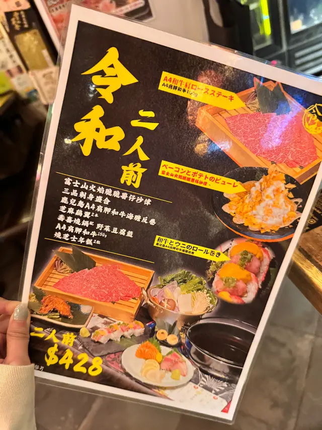 【旺角居酒屋推介】「令和四人前套餐$798」👍🏻抵食!😍佢火焰薯仔沙律同埋冰菠蘿係我哋最鍾意食!另外刺身同壽喜燒都係好食!😆同朋友一齊食飯,最緊要多嘢食開心🥰仲食到三款牛肉,叫套餐真係fit晒!乜都唔使諗😂絕對會再嚟食encore🥰富士山火焰脆脆薯仔沙律日本洋蔥溫泉蛋沙律網燒魚乾四品刺身盛合鹿兒島A4肩胛和牛海膽反卷壽喜燒鍋 配(三款牛肉)日本A4黑毛和牛100gM7 澳洲和牛100g美國安格斯牛肉100g野菜豆腐籃 x2燒飯團 4本冰火菠蘿芝士年糕4粒…查看更多