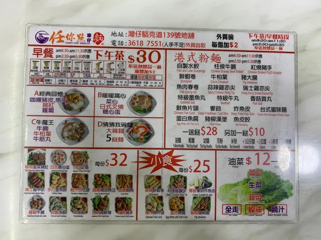主打平價大大塊花膠及其他新式車仔麵餸如日式糖心蛋、手打墨魚餅。湯底汁醬可自由選擇,有酸辣,咖哩唔同口味選擇!主打新派車仔麵料 連花膠都食得到! 一份十幾蚊已經有2大片花膠 !鮑汁炆花膠 夠入味係好大塊 食車仔麵食到花膠真係好少見! 好滋補!另外仲有台灣貢丸 日本大花菇浸到好入味!好香蠔油味蘿蔔大件清甜無渣! 湯底咖哩濃香微辣夠刺激! 仲有手打墨魚餅煎到香脆咬開係粒粒墨魚肉鮮味彈牙!而家下午茶優惠超抵食!平均消費$50評分8/10灣仔駱克道139號地舖…查看更多