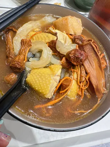 㖊日(29-11-2025 Sat)晏昼,同老公回收完物资后,嚟呢喥食晏,佢喺我以为只有酸辣汤但有银针粉嘅呢间买咗$65.00嘅公司米线,要清鸡汤银针粉,饮热菊花蜜。等咗一阵就有齐,睇见每样食材多数得一件,有墨鱼丸,白鱼蛋,贡丸,墨鱼条,五花腩片,白萝卜,鸡中翼各一,豆卜几件,丸类同墨鱼条呢啲来货味道同口感都正常,豆卜唔够腍同唔入味,白萝卜清甜冇渣,但又系唔入味,鸡中翼应该系卤水鸡翼(?)呢个好啲啲,因为唔系唔入味,面系唔够味,五花腩片普通正常,银针粉口感正常冇问题,清鸡汤味道都唔太浓。2.66分热菊花蜜就够味同几好饮。4分抵食系2.7分…查看更多