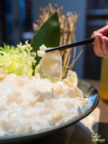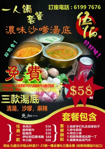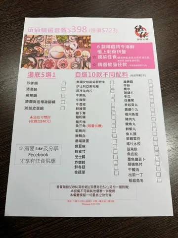 每次去伍佰,目的都当然系食火锅,但估佢唔到,小菜都同样出色。其实伍佰设有厢房,仲有卡拉OK,可以边食边玩,真系好正。头盘竟然系原条加拿大野生象拔蚌刺身,新鲜货果然不同,肉质爽弹鲜甜,沾上酱油味道更鲜,无得输。再来是石斛杞子炖鸡,火喉十足,材料的味道都溶入汤里,每口都是精华,舌底生津,而且份量够大,差不多一人两碗。未到正题又来正野,就系白灼蝴蝶蚬,大大只,肉又鲜甜弹牙,可能店主识人拎货,海鲜类真心觉得好。上汤焗龙虾配煎米粉很多时都会在酒楼食到的菜色,伍佰似乎都不错,龙虾爆得几香,肉质爽弹,最喜欢置底的煎米粉,配上龙虾汁超美味。蒜茸粉丝蒸贵妃蚌毕竟海鲜用蒸的,最能表现出鲜味,蒜茸的香气,正好与肥美的贵妃蚌契合。姜葱焗蟹配肠粉姜葱蟹不是什么令人惊艳菜色,但置底的肠粉蘸满了蟹汁好惹味,似乎好啱我呢类懒人。招牌烧乳鸽押上了店名,可见有信心,鸽皮好香,有微脆,肉质亦不觉嚡,腌得好入味,送酒一流。帝王瑶柱蛋白炒饭份量十足,在瑶柱蛋白炒饭的基础上加入蟹籽,令人更觉矜贵,而且炒得好干身,不错。…查看更多