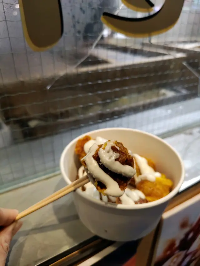 何止港式小食那麼簡單 follow.m.y.eatlog等级42022-11-1545 浏览 关注 位於荃灣的外賣小食店,這條街雲集各類食店,各式其式,而這間除了供應經典的港式小食,如燒賣、魚蛋、腸粉、雞髀、碗仔翅外,還有其他日式及創意小食,如炸壽司、炸乳鴿、丼飯等。大阪燒:章魚大阪燒大阪燒餡料有高麗菜、章魚,每一口都有粒粒章魚,很足料。醬汁有大阪燒汁、沙律醬、木魚絲,味道很有日本風味。炸物:卡邦尼炸燒賣西式風味的燒賣,炸得金黃、脆口。燒賣有豬肉餡、煙肉及洋蔥,後者較強烈,所以味道不太像卡邦尼。這款跟沙律醬較配,不適合點豉油。名物:生菜鯪魚肉街頭風味的生菜魚肉,大量的生菜墊底,清雞湯加上麻油及白胡椒粉,很惹味。鯪魚肉大大條,肉質蠻彈牙。…查看更多+ 3以上食记乃用户个人意见 , 并不代表OpenRice之观点。1分享何止港式小食那麼簡單 何止 https://s.openrice.com/QrLT02Mr600检举 张贴 评分5味道4环境4服务4卫生5抵食用餐途径堂食