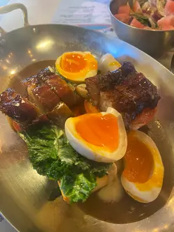中环揾食嘅选择多到眼花缭乱,不过想食啲有惊喜又啱晒打卡嘅fusion菜,一定要试下「何兰正」。餐厅将中西元素玩到出神入化,无论二人约会定一大班人聚餐,都好有气氛又够体面。 今次我哋就试咗招牌二人套餐$308 一位: 🐖 *西班牙黑毛猪叉烧黄金馒头配菠萝薄片/飞鱼籽甜酸酱* - 传统叉烧变身fusion小吃,外脆内嫩,配菠萝薄片酸甜刚好,食落开胃又精致。 🥩 *当归酱油火炙是日靓牛肉 香茜虫草花龙口粉丝沙律配鲣鱼花生油醋汁*- 牛肉轻火炙锁住肉香,配上粉丝同带果仁味嘅油醋汁,好refresh,妁特别。 🍚 *24小时慢煮伊比利亚叉烧/日本温泉蛋 红洋葱渍/香喷喷猪油捞饭*- 叉烧肥瘦均匀,软腍juicy,配渗出蛋黄嘅捞饭香到飞起,真心邪恶嘅满足感。 🦐 *煲仔啫啫铁板爽甜海油虾 配香浓沙爹汁 炒羽衣甘蓝及煎虾米肠粉* - 虾肉弹牙,加埋沙爹汁香浓惹味,肠粉边位煎到焦香,层次感超丰富。 🍫 *手制五仁流心朱古力煎堆 配椰香青柠忌廉*- 中式煎堆玩出新意思,内馅朱古力流心同椰青柠忌廉撞出新鲜感,甜而不腻。 🍮 中国白腐乳/法国白芝士焦糖炖蛋 配松脆包 无花果酱及综合野莓- 炖蛋幼滑,配上酸甜果酱更添层次,好味又精致。 成个套餐由头到尾惊喜连连,一边食一边同老best倾计,大家都话一定要再带其他朋友嚟一齐试! 💕…查看更多