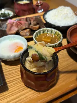 《精致新派日式菜🇯🇵》———————————————-#余白 🤍 -早排weekend无野做想去行下观塘工厦,意外发现呢间新派日式fusion 菜🏮新开小店地方宽敞,干净阔落,好啱同朋友嚟chill吓☺️-🐮 慢煮黑毛和牛御膳超高质!慢煮黑毛和牛肉质鲜嫩得嚟仲保留咗肉嘅原汁原味,经过低温慢煮,牛肉吸收咗调味料,充满肉香😘 一定要加埋只流心蛋,捞埋食而且佢系有三种食法,除咗就咁食原味,或者加Wasabi之外,仲可以做到茶渍饭,非常清香🍵-🐮烧牛舌芯御膳另一款套餐烧牛舌芯同样好有水准,牛舌烧到外脆内嫩,质感唔同于成熟牛肉,牛舌嘅嫩滑真系令人惊喜,配搭浓郁日式咖喱汁同流心蛋更有层次感 😝-套餐包咗茶碗蒸,口感嫩滑,里面亦都非常足料,大加分😚跟餐蕃茄罗宋汤亦系另一个亮点,汤底浓郁但唔会过于油腻,蕃茄酸甜味道解腻一流!-🍮 伯爵茶焦糖鸡蛋布丁布丁非常绵密,焦糖的味道刚刚好,唔会抢走伯爵茶嘅清香,搭配柚子汤力,清新又醒神!-⭐ 参考价钱︰(另收加一)慢煮黑毛和牛御膳:$168烧牛舌芯御膳:$158伯爵茶焦糖鸡蛋布旬:$14柚子汤力 :$21🍌 抵deal 指数:8/10-…查看更多